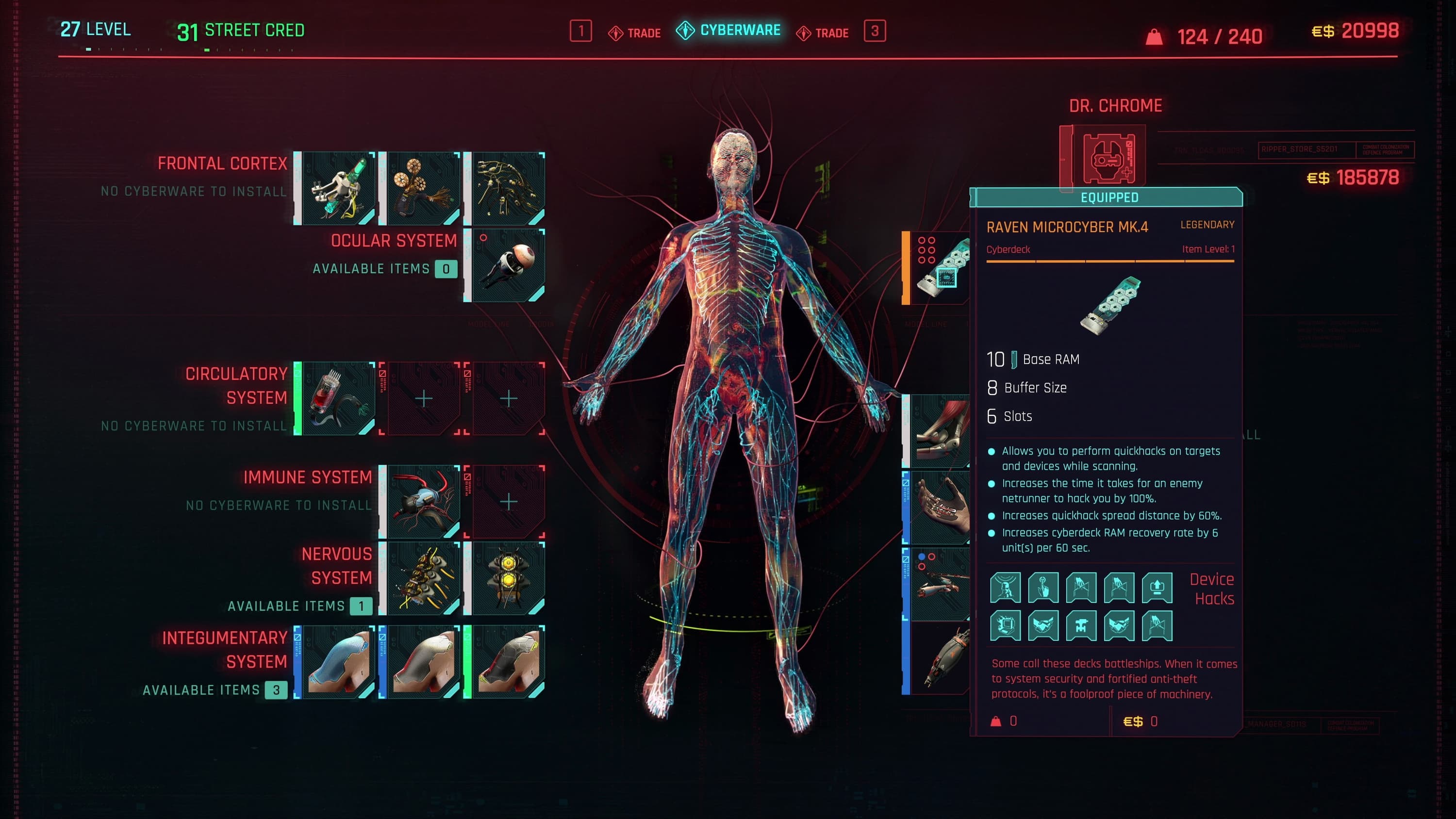 Хотя идея улучшения человека путем замены слабой плоти на более практичные и надежные механические компоненты протянута через всю игру, полноценным киборгом в Cyberpunk 2077 стать нельзя. Тем не менее, у Ви все же получится почти вплотную к этому приблизиться, устанавливая в тела имплантаты, усиливающие скорость, силу, выносливость, а также позволяющие взаимодействовать не только с компьютеризированными системами города, но и его обитателями.