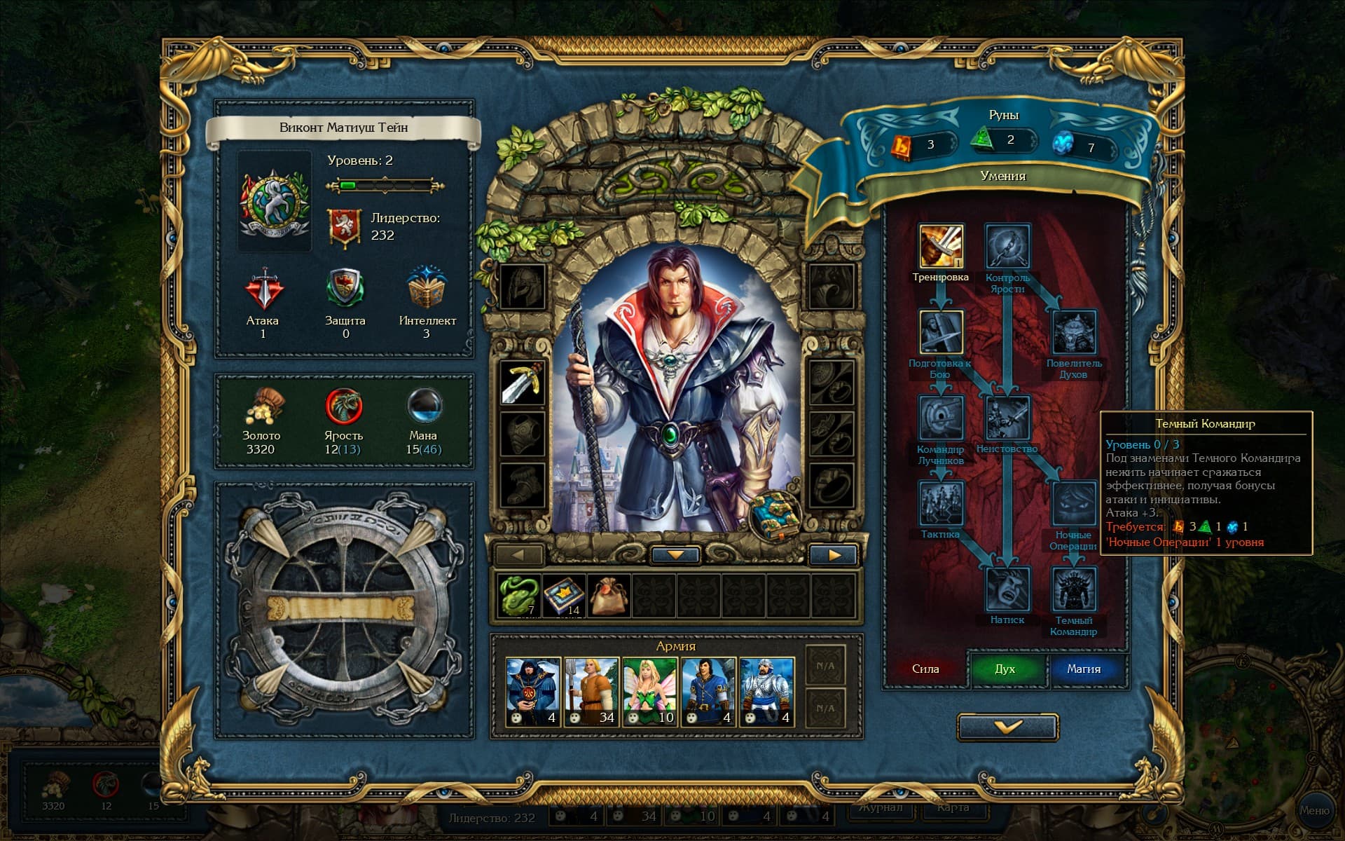 Основа игрового процесса осталась той же: игрок перемещается по локациям, выполняет задания, набирает армию. Однако Katauri Interactive сделали процесс ещё более разнообразным. Так появилась прокачка героя, которая влияет не только на его умения и магию, но в большей степени на его армию. Чтобы использовать нежить без штрафов, необходимо сначала прокачать навык «Тёмный командир» в ветке Силы, а для изучения магии Хаоса – отдельное умение в ветке Магии. Для прокачки требуются три вида рун: Силы, Духа и Магии. Каждый новый уровень даёт определённое количество рун и возможность прокачать глобальные характеристики: атаку, защиту, интеллект, лидерство, ярость и ману. Хотя, никто не запрещает улучшать их с помощью отдельных навыков в ветках прокачки.