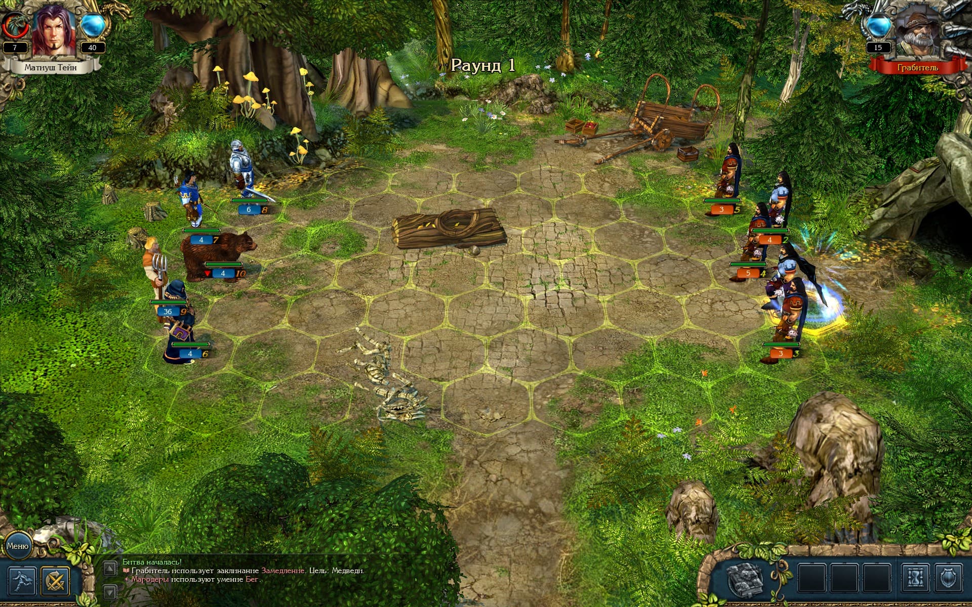 Пошаговый бой был разнообразным как раз из-за огромного количества юнитов. Стартовые лучники, солдаты и крестьяне могли только ходить и бить врага. Каждая цифра под юнитом – это количество отрядов, подконтрольных игроку. Чем их больше, тем больше атака. Но вот юнит «Духи» всегда начинал с малым количеством отрядов и за каждую атаку пополнял себе «жизни» за каждый убитый отряд, значит становился сильнее. Это приносит разнообразие в тактику, заставляя обдумывать свои ходы в зависимости от вида и количества противников.