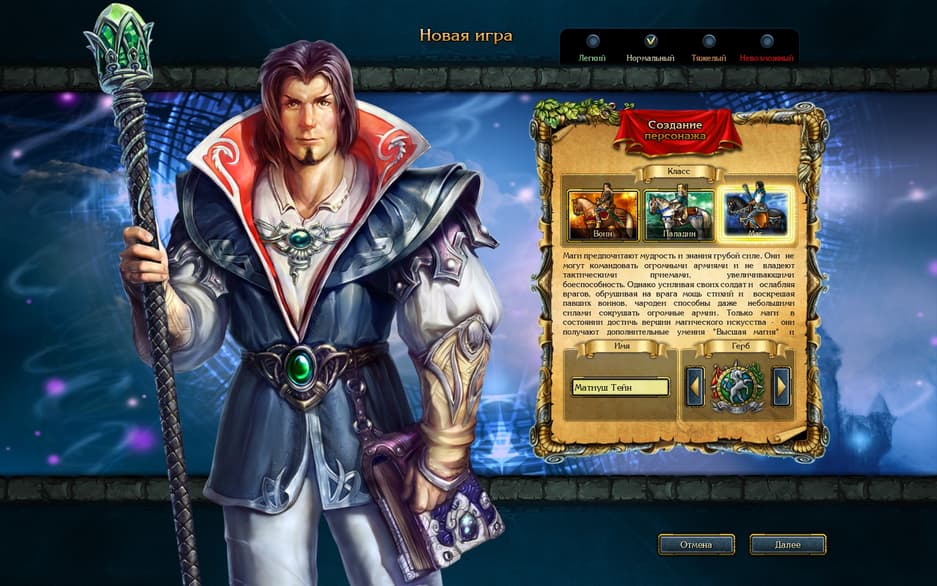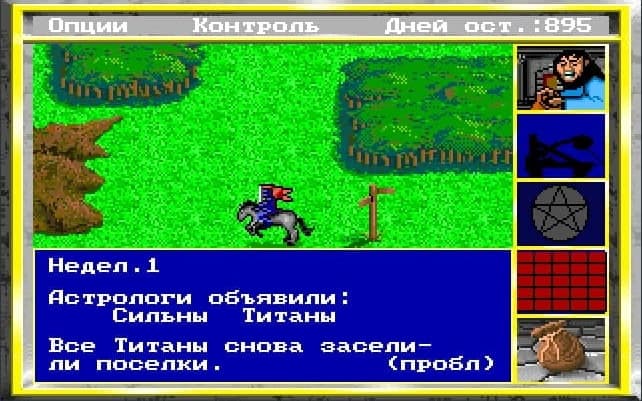 От выбора сложности зависело, сколько дней у игрока есть на поиск главного артефакта, а также множитель золота, которое он получал каждую неделю. Игровая неделя делилась на 5 дней, и каждый раз появлялась плашка «Астрологи объявили…». Да, и эта особенность Heroes of Might and Magic пошла из King’s Bounty.