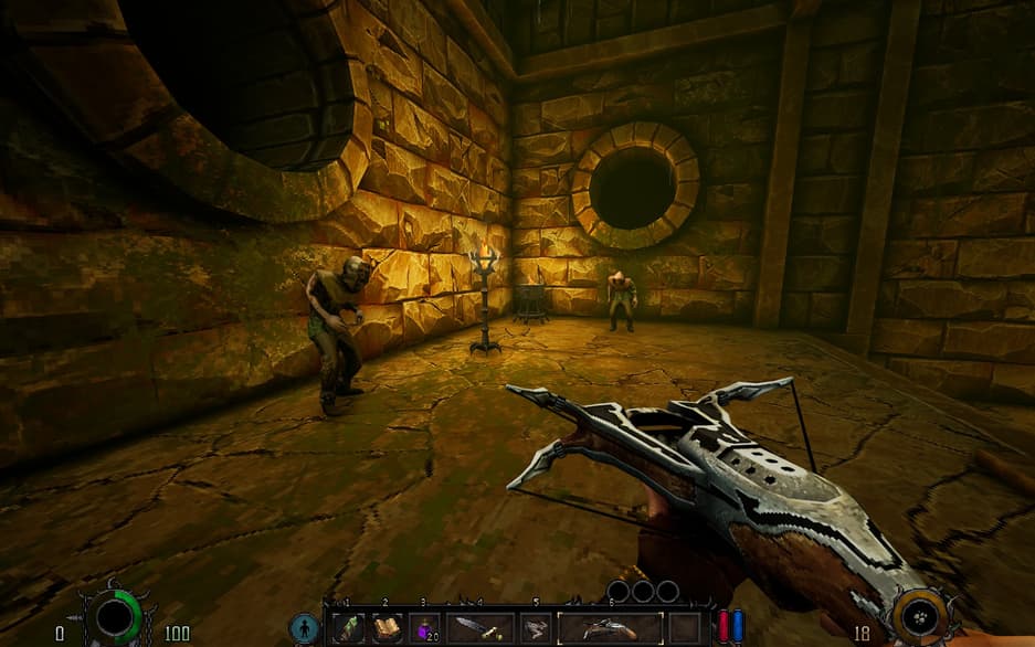 В первую очередь, Graven — шутер. По крайней мере, он станет им, как только вы заполучите арбалет или местный аналог дробовика. Есть оружие ближнего боя — короткий меч. Им даже можно блокировать или парировать удары, но выгода от того и другого не очевидна. Забить врага проще и безопаснее, чем позволить ему себя ударить.