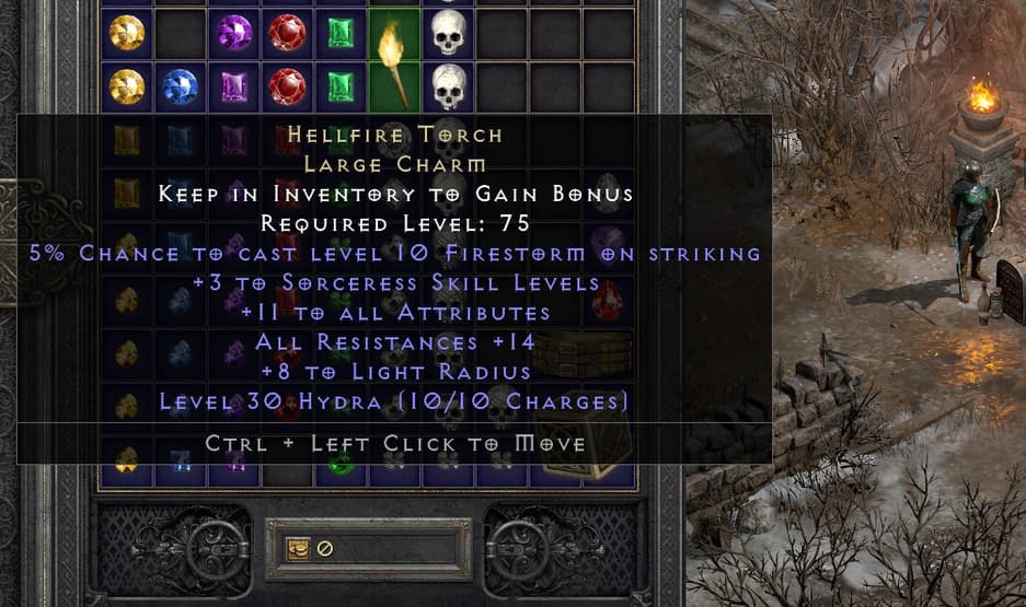 - Убер-квест – задание на получение Hellfire Torch. Необходимы ключи: Key of Terror (из The Countess), Key of Hate (из The Summoner), Key of Destruction (из Nihlathak). Выполняется, чтобы получать такие, как на скриншоте, штучки для разных классов.