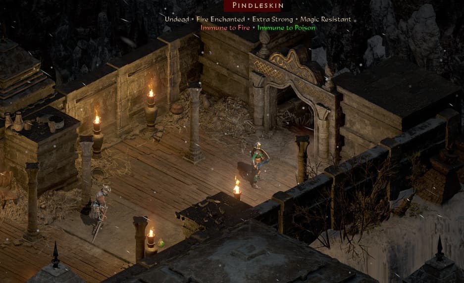 - Интересно: так как подготовленный персонаж способен убивать Pindleskin'а за 10-15 секунд и мгновенно создавать новую игру на Battle.net, ранее за это могли банить из-за подозрения на бота. Сейчас после быстрого убийства и перезахода предусмотрена определённая задержка – игра напишет сообщение, что к серверу невозможно подключиться из-за отсутствия соединения. Разработчики обещают, что код перепишут и «фармить» можно будет беспрепятственно.