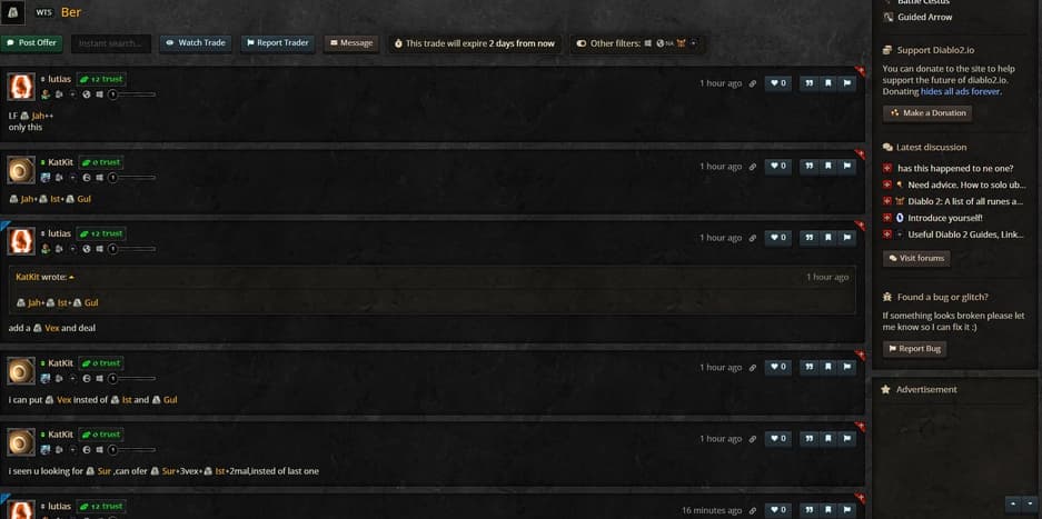 Есть альтернативные варианты на сторонних сервисах – можно пойти на Reddit или более удобные специализированные фанатские форумы diablo2.io или d2jsp.org.