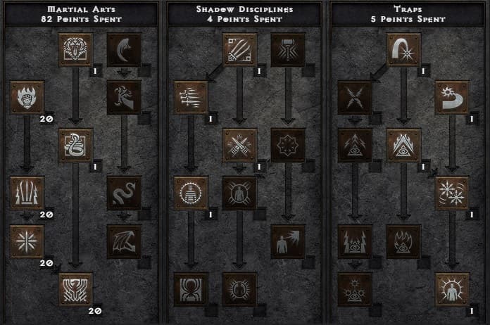 - Оружие – +3 to Martial Arts [Assassin Only]. Можно купить в 5 акте у Ани. Вариант: RW Crescent Moon