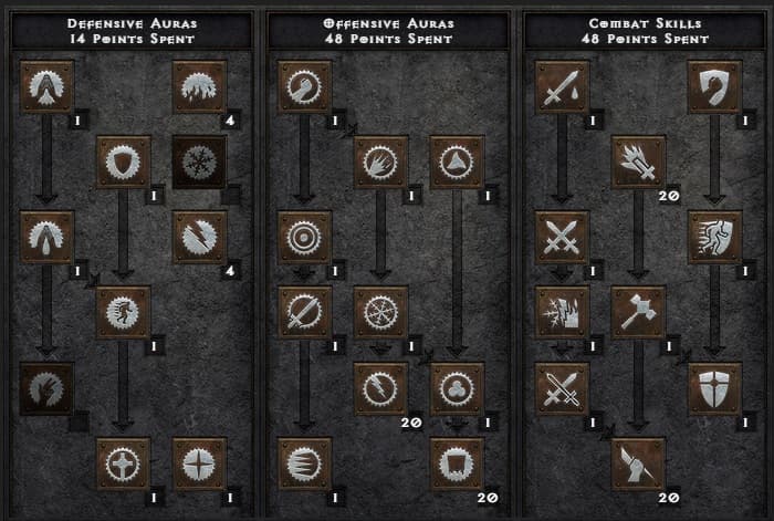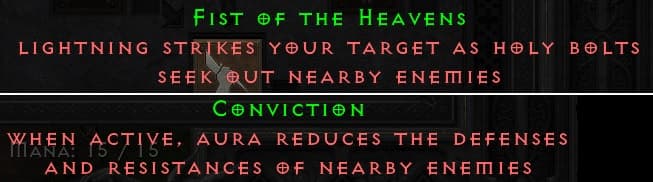 Такой паладин после патча 2.4 вполне может заменить набившего оскомину Hammerdin’a. Атака Fist of the Heaven наносит два вида урона – Magic и Lightning, а значит наш тёмный властелин «фармит» большинство локаций. Лучшую результативность гарантирует аура Conviction. Высокая скорость магических атак, максимальный шанс блока и великолепные сопротивления.