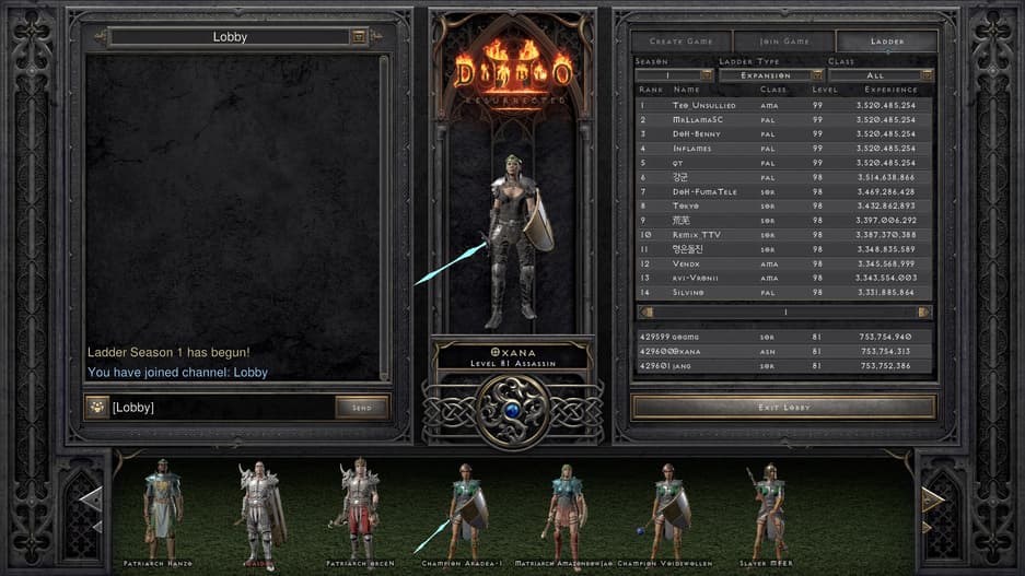 Наконец-то 28 апреля введён рейтинговый режим – ладдер. Здесь более умные монстры, собственные рунные слова, рецепты хорадрического куба, а также рейтинговая таблица (зал славы задротов), где есть место каждому игроку. А в будущем в ладдере обещают даже уникальные события.