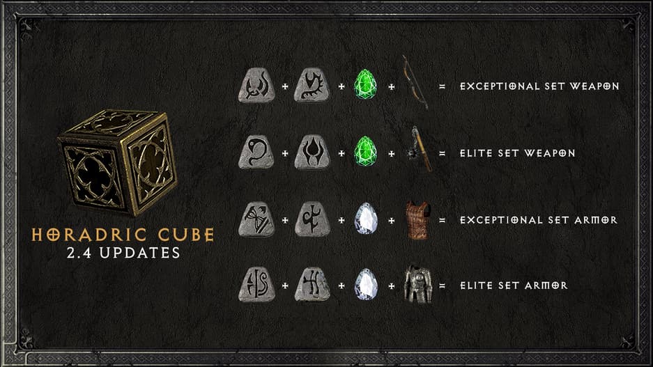 - Новые рецепты хорадрического куба. В первом сезоне их четыре и все для улучшения комплектных предметов. Глобально ничего не приносят.