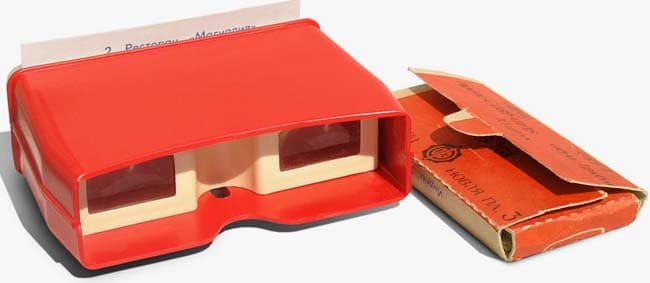 В стереоскоп помещаются две плоские фотографии, снятые под разным углом (стереопара). При рассматривании стереопары каждый глаз просматривал «свою» фотографию, что создавало трехмерный эффект. Устройство использовалось и используется как в практических целях (например, для дешифрирования аэрофотоснимков земной поверхности), так и для развлечения. Но главное — форм-фактор виртуальных очков и технология формирования в глазах объемного изображения с тех времен не изменились. Чтобы убедиться в этом, достаточно одного взгляда на самый распространенный советский «шлем виртуальной реальности» — стереоскоп Салют-М.