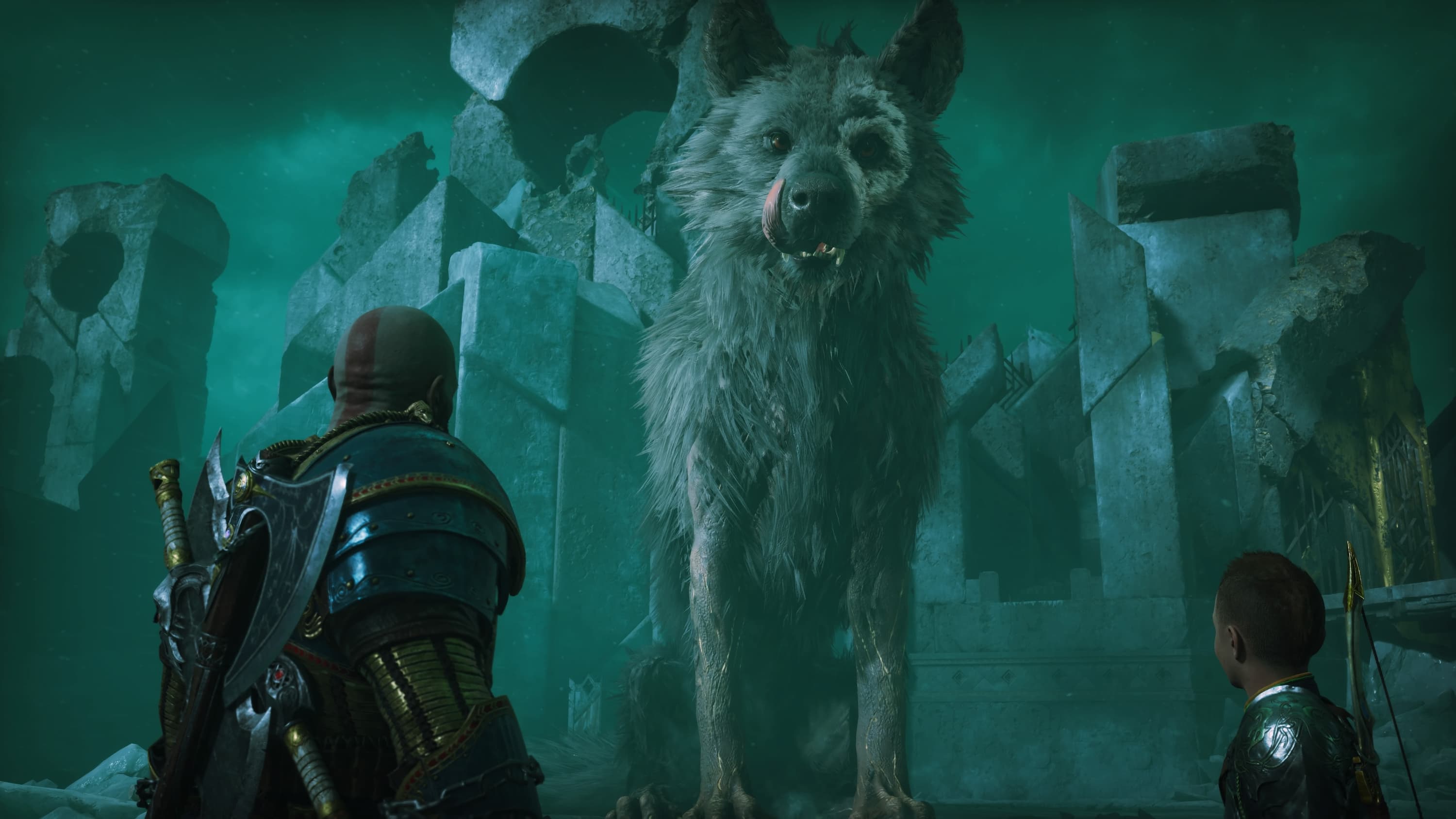 Зовут мохнатых друзей Спеки и Сванна, но они не упоминались в мифологических произведениях — Santa-Monica придумали их специально для игры, хотя изначально фанаты думали, что это будут волки Сколь и Хати. Есть и третий волк — Фенрир, который уходит в загробный мир на руках Атрея в начале игры. Это мифологическое создание из произведений Стурлусона и Сэмунда Мудрого, но к нему мы вернёмся чуть попозже, когда будем разбирать существ, участвующих в последней битве в Асгарде.