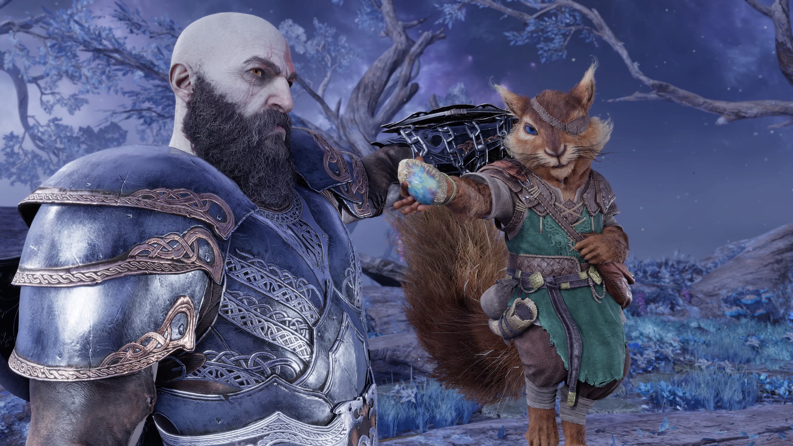 Комичный персонаж из God of War: Ragnarok, хозяин домика на древе Иггдрасиль, который умеет разделять части характера на отдельные личности. Его роль в игре куда больше, чем отведённая ему в мифологии, где грызун — посланец между драконом Нидхёгг и орлом-йотуном.
