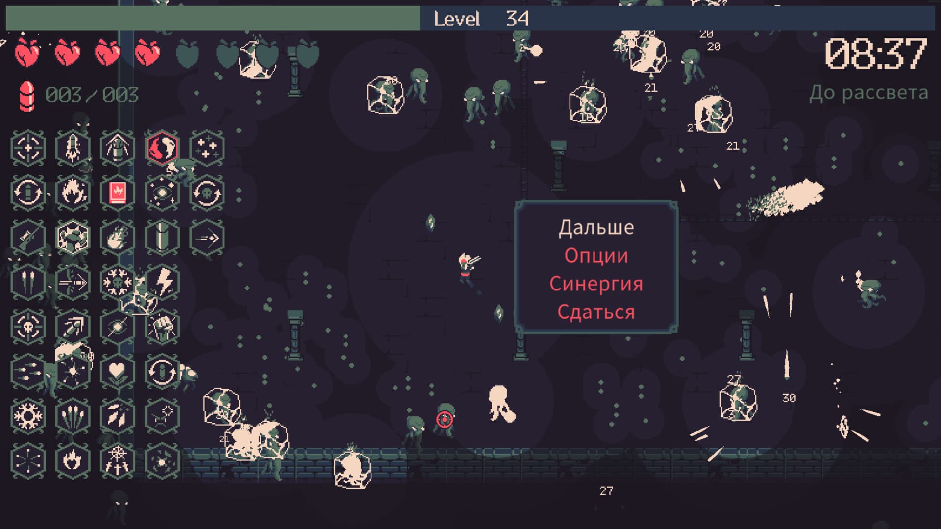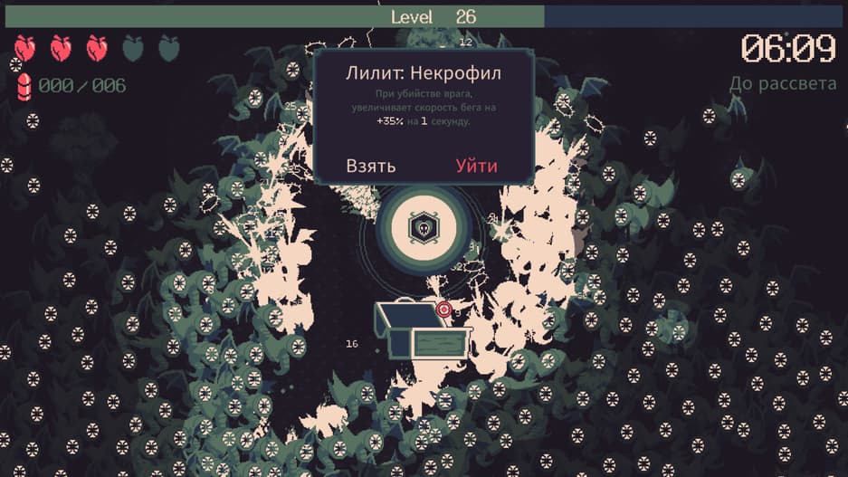 У игры выделяется и управление. Если Brotato делает упор на контроллер, то в 20 Minutes Till Dawn лучше использовать клавиатуру и мышь — удобнее отстреливать подступающих монстров. Можно еще включить автонаводку, но она игнорирует боссов.