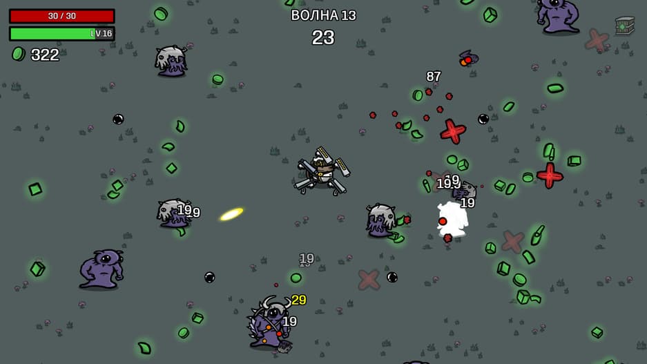 В результате получается увлекательный проект, с большим разнообразием прокачки и приятной музыкой. Хоть Brotato и зависит от случайности, игроку будут чаще предлагать оружие и предметы, совместимые со сборкой. Жаль только, что волны атакующих пришельцев не хвастаются разнообразием.