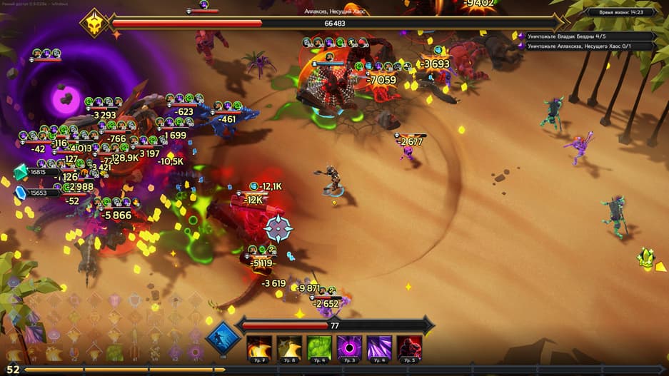 Цель игры заключается в сборе ресурсов: ходим по арене и собираем драгоценные металлы. Мешают нам Владыки Бездны, а убивая их получаем кристаллы боссов. Закончили уровень? Проходим снова, но с уже более сильными врагами. Все ради того, чтобы открыть новых персонажей, и прокачивать уже их.