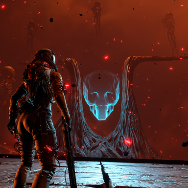 На i7-5960X, RTX 2060, 32 Гб ОЗУ по началу играть было приятнее некуда. Удалось выставить ультра-настройки без трассировки, с DLSS в режиме «качество» — игра пусть и проседала до 30 кадров в секунду в напряжённые моменты, но играть было комфортно. Пока взору моему не предстал третий босс — Немезида. Бой с ним поставлен изобретательно, но количество эффектов в секунду заставили ПК задыхаться — частота кадров упала до 15-20, и пройти бой было попросту невозможно. Да, понизив настройки до минимальных, босса удалось убить, но после этого рубежа Returnal отказалась работать даже на «высоких» настройках графики адекватно.