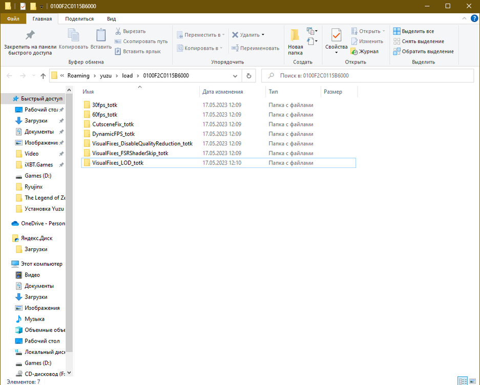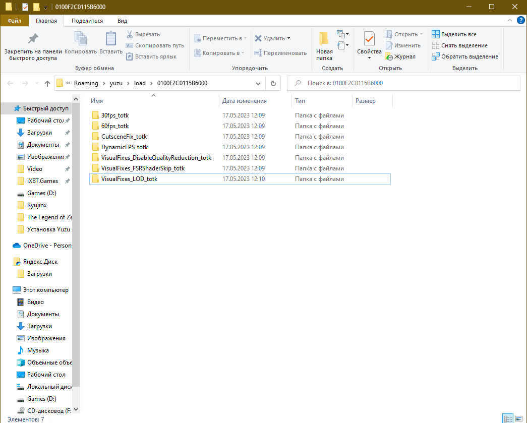 Если же какой-то из модов отсутствует — повторите предыдущие шаги и проверьте, что перенесли папки с модами в правильную папку Yuzu (C:\Users\%Username%\AppData\Roaming\yuzu\load\0100F2C0115B6000).