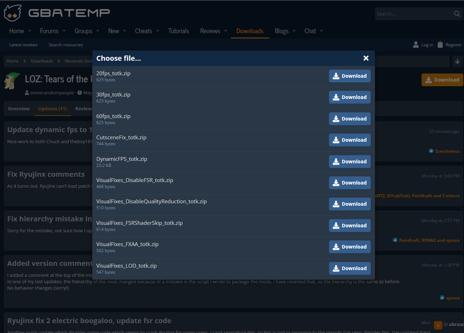 Tears of the Kingdom нуждается в нескольких модах, без которых работать игра будет с проблемами. В момент написания статьи их количество изменилось: из двух штук они превратились в десять! Сообщество постоянно ведёт работу — они решили разделить один мод на пять частей, чтобы каждый игрок мог скачать нужное и иметь лучший опыт. Найти их можно по ссылке — тут они собраны в одном месте и авторы регулярно их обновляют.