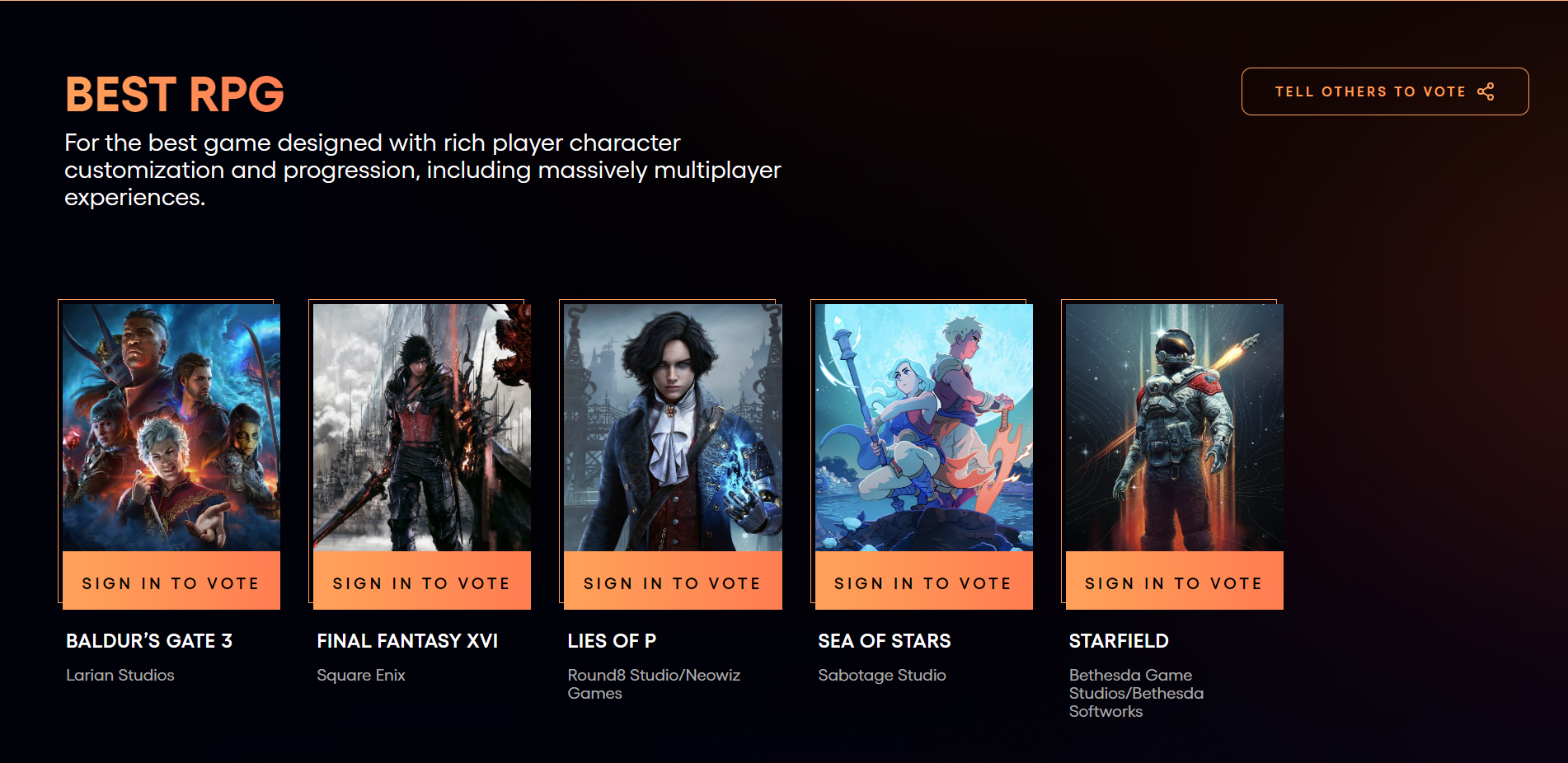 В номинации «лучшая ролевая игра» смущает наличие Final Fantasy XVI и Lies of P — обе являются представителями жанра «экшен», а от «ролевых игр» только прокачка способностей да смена снаряжения! А если мы говорим об играх, вроде Lies of P, где тогда Remnant 2, Lords of the Fallen или Wo Long: Fallen Dynasty? Ну, первая как минимум номинирована на «лучший экшен»! А почему тогда Lies of P «ролевая игра»? И где божественная Wartales? Вопросов всё больше и больше!