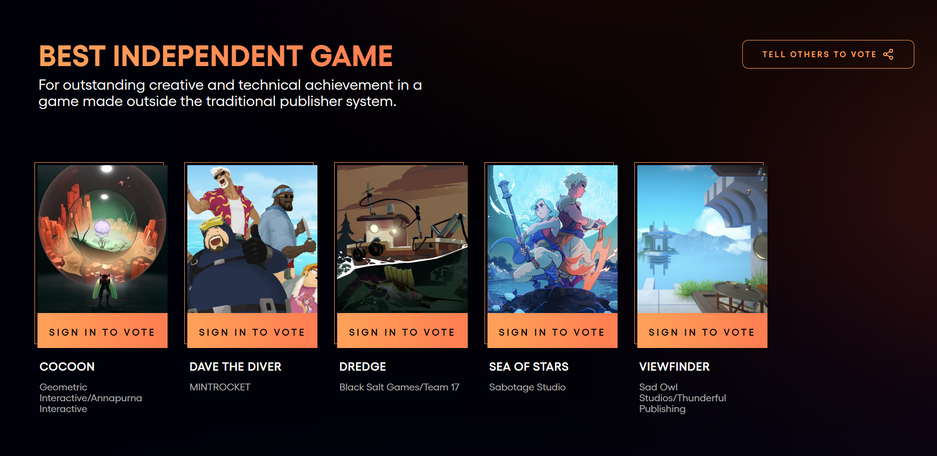 Маленьких и средних по бюджету проектов почти не представлено ни на одной из конференций. Только «инди» от известных разработчиков или тех, кто выстрелил настолько мощно, что не заметить их было нельзя. Если посмотреть список номинантов в 2023 году, то диву даёшься — а где остальные инди-шедевры этого года?