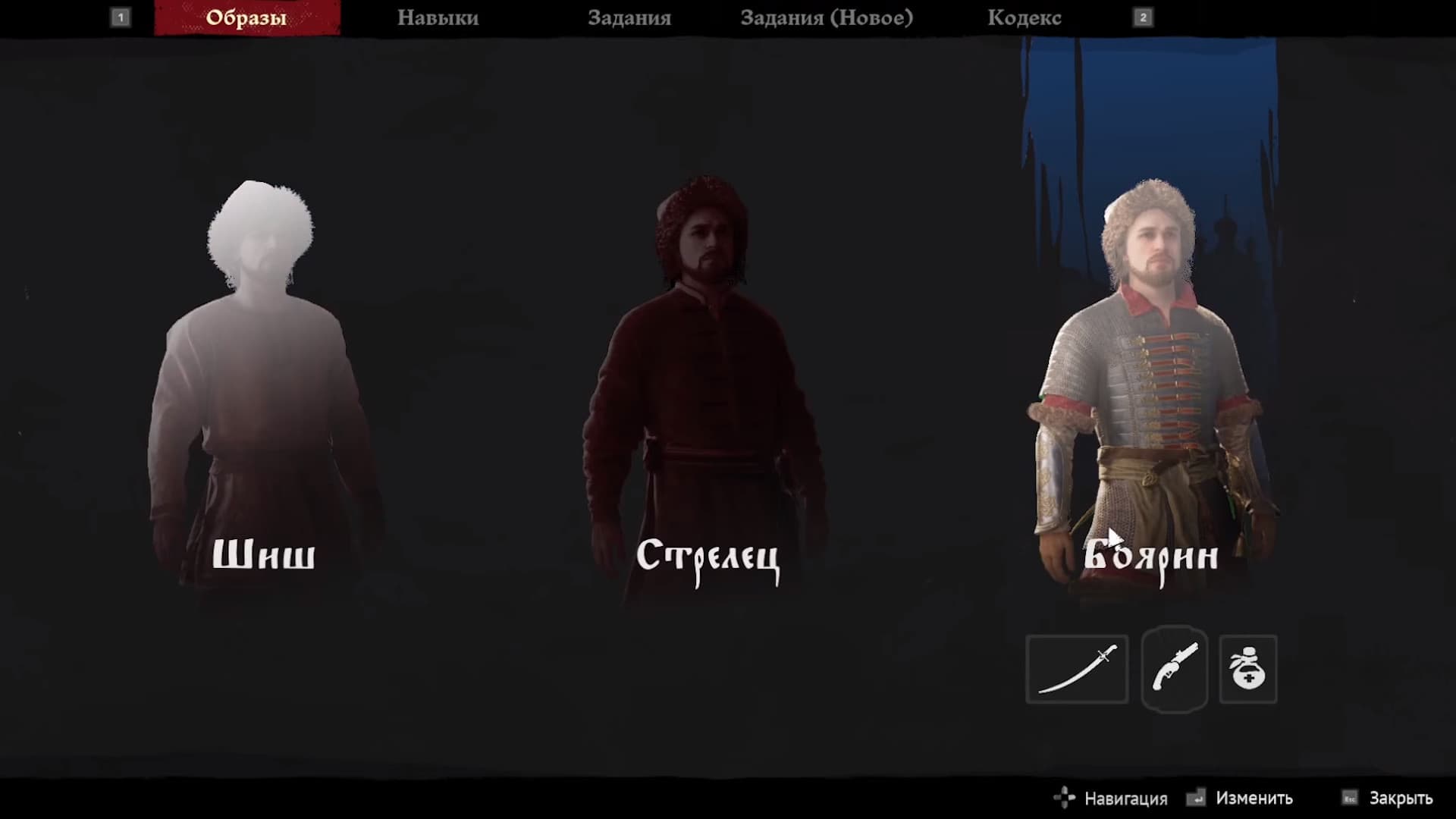 На ранних скриншотах мелькали образы боярина, который владеет саблей, пистолетом и лечением, а также стрельца и шиша — партизан на территории Русского царства в период Смутного времени. По последней информации, первые три образа превратились в шиша, ратника, наемника и стрельца. Возможно, боярин будет премиальным образом.