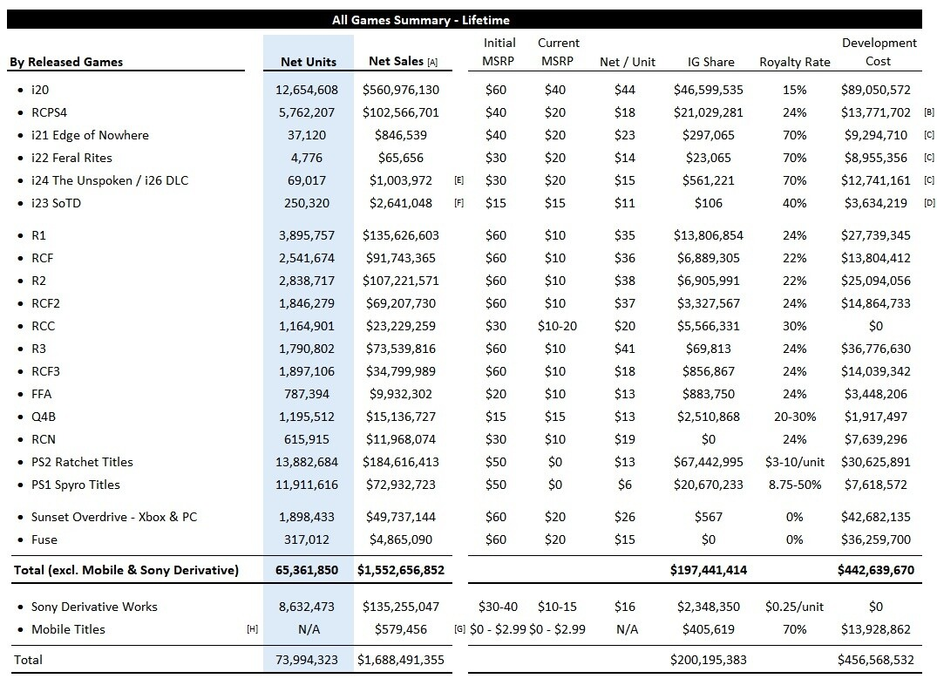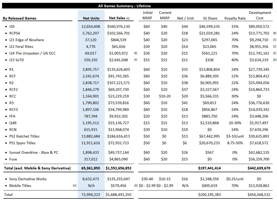 Ещё немного финансовой информации о продуктах Insomniac Games, а некоторые из них даже не появлялись на PlayStation: