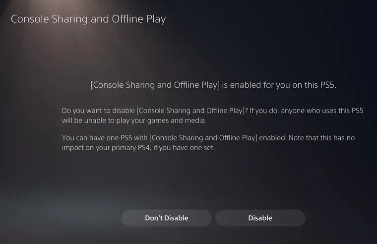 - Выберите раздел Users and Accounts > Other > Console Sharing and Offline Play