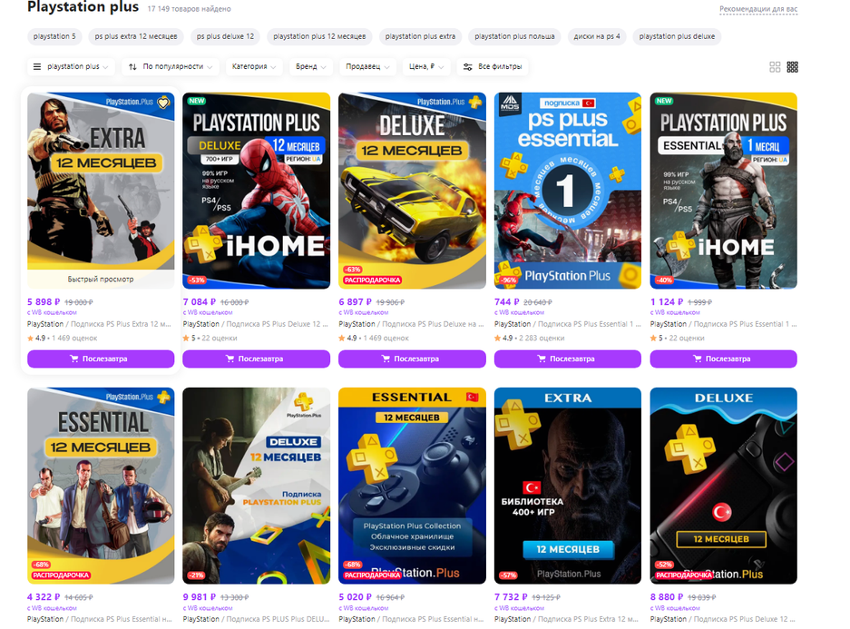 Если же вы за последние два года уже слишком привыкли к Турции и не очень хотите что-то менять, то на различных торговых площадках вроде той же Авито, Playo или Wildberries есть предложения не только с картами на различные тарифные планы PlayStation Plus, но также непосредственное приобретение игр на свою учетную запись через сторонних лиц, а также карты пополнения кошелька.