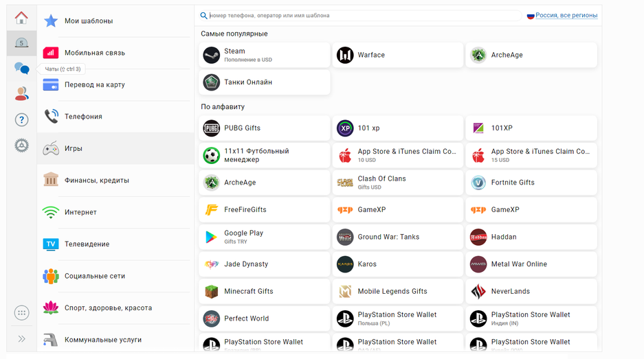 Для российских абонентов Билайн и Теле-2 также доступны услуги покупки карт пополнения номиналом 10, 25, 50 и 100 долларов США. Комиссия составляет порядка 10% от стоимости карты и актуальна только для американских профилей. Аккаунты, зарегестрированные в Польши, Германии и других странах пополнить таким образом нельзя. Деньги списываюится с счета абонента, а код приходит на электронную почту, которую нужно указать в специальной форме.