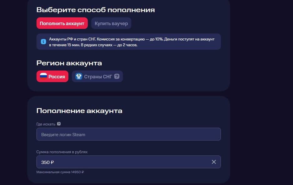 После сделки средства попадают на ваш кошелек, с которого затем и можно полнить баланс Steam, воспользовавшись опцией «Платежи» > «Игры» > «Steam пополнение в USD».