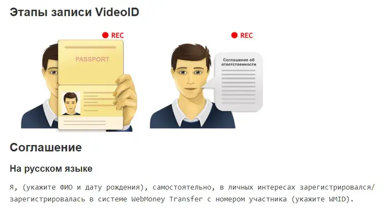 Если вы всё же решитесь, то вам нужно авторизироваться на портале Passport Webmoney и предоставить сервису паспортные данные. После этого нужно также подтвердить свою личность через сервис VideoID, записав видео, на котором будет целиком видно ваше лицо и разворотная сторона паспорта. Записать ролик можно через браузер или мобильные устройства на базе iOS и Android.