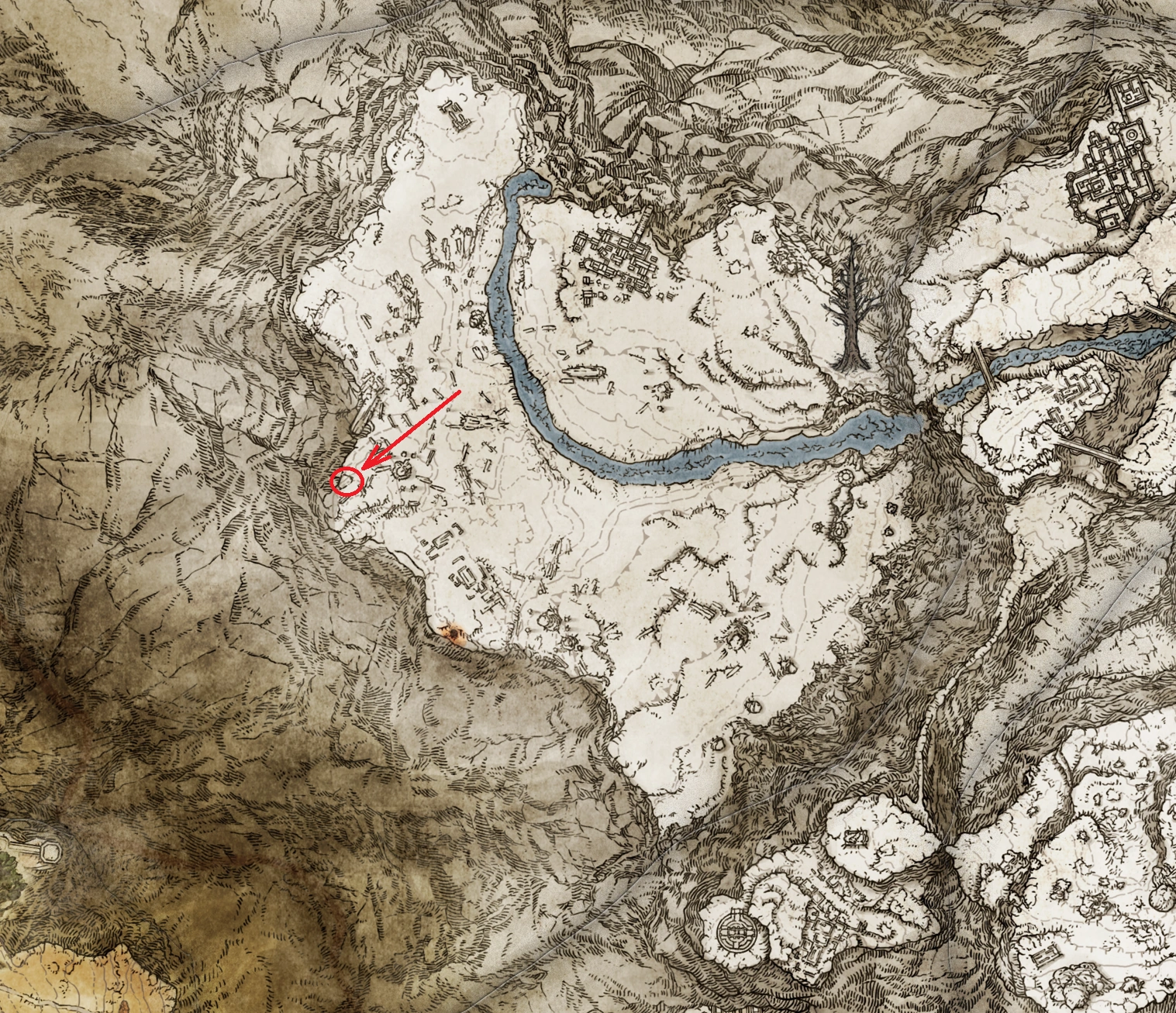 Попав туда и активировав благодать «Тайный путь к Святому Древу», отправляйтесь вдоль гор на северо-запад. Пройдите мимо руин, внизу вы найдёте портал с лужицей крови, взаимодействуя с которым, вы и попадёте во Дворец Могвинов. Будьте осторожны — перед отправкой к вам вторгнется красный фантом. Победить его необходимо, иначе портал будет неактивен.