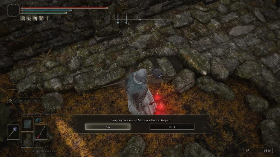 Теперь можно вернуться к Варрэ. Протяните ему руку и получите «Окровавленный палец» — бесконечный аналог «Гнилого окровавленного пальца».