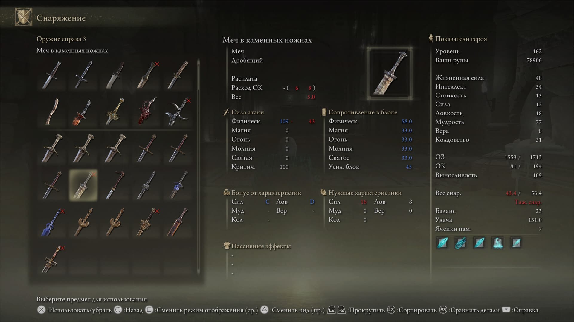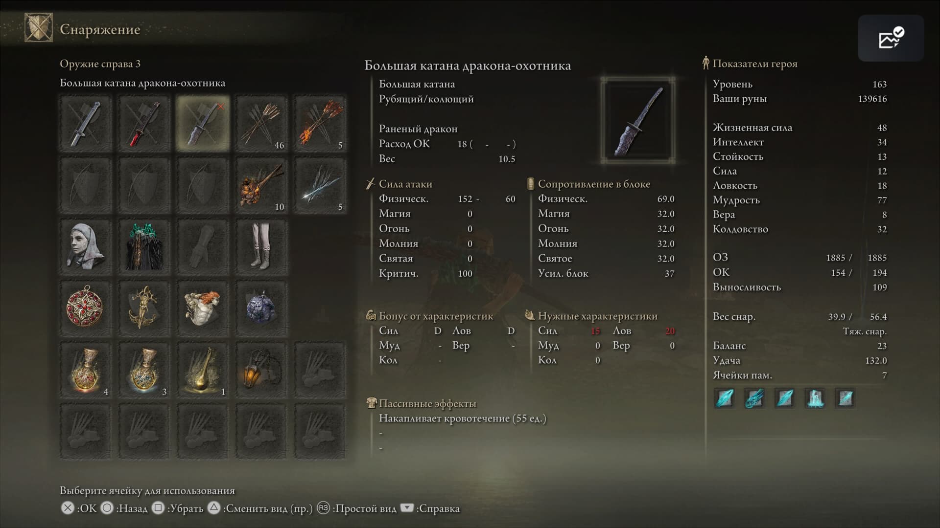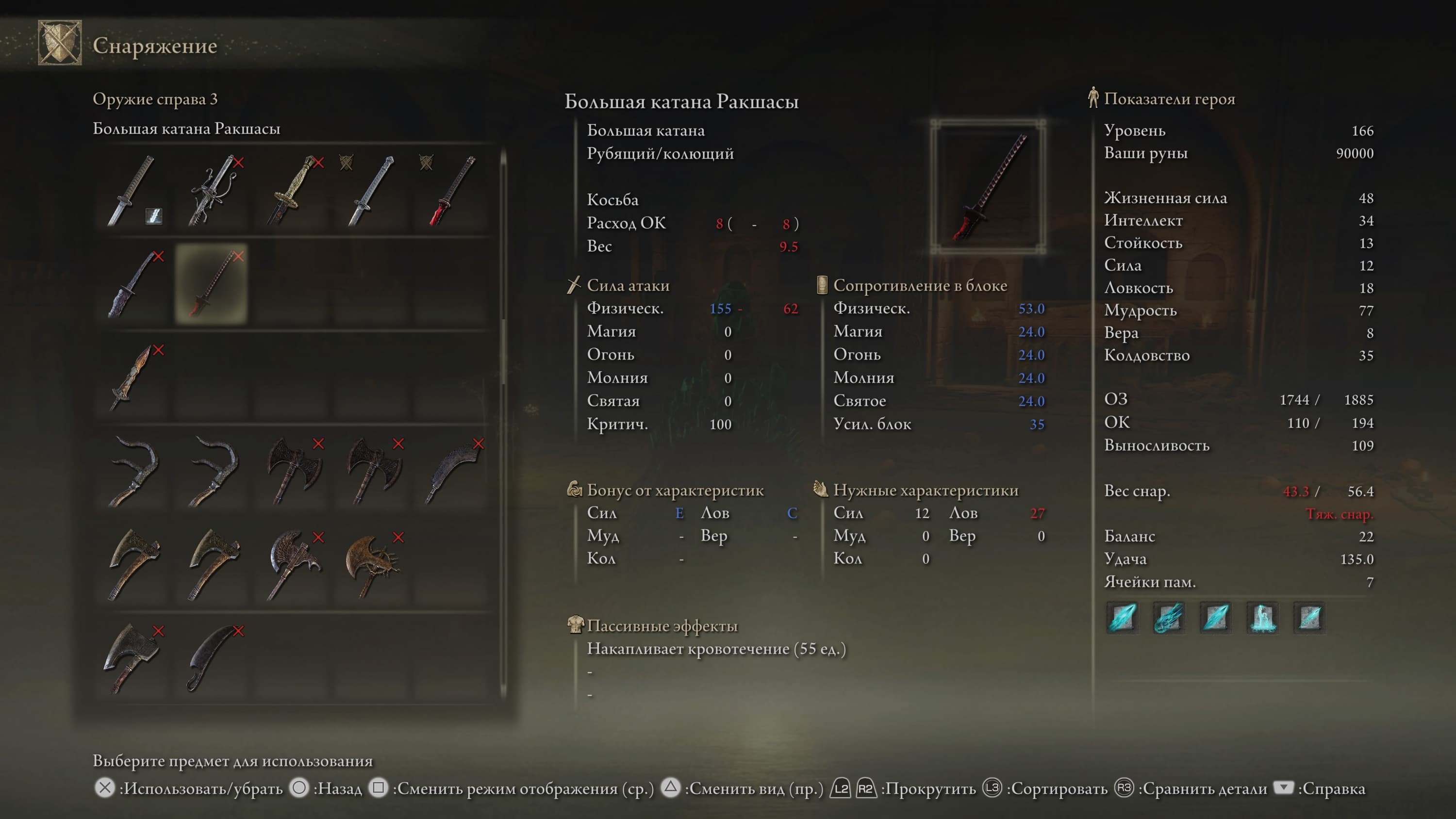 Клинок можно наделить способностью Пепла войны для изогнутых мечей и «заточить» на элементальный урон.