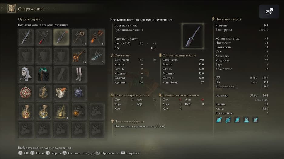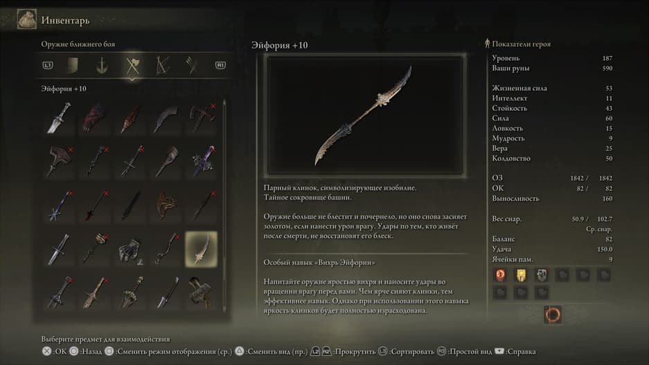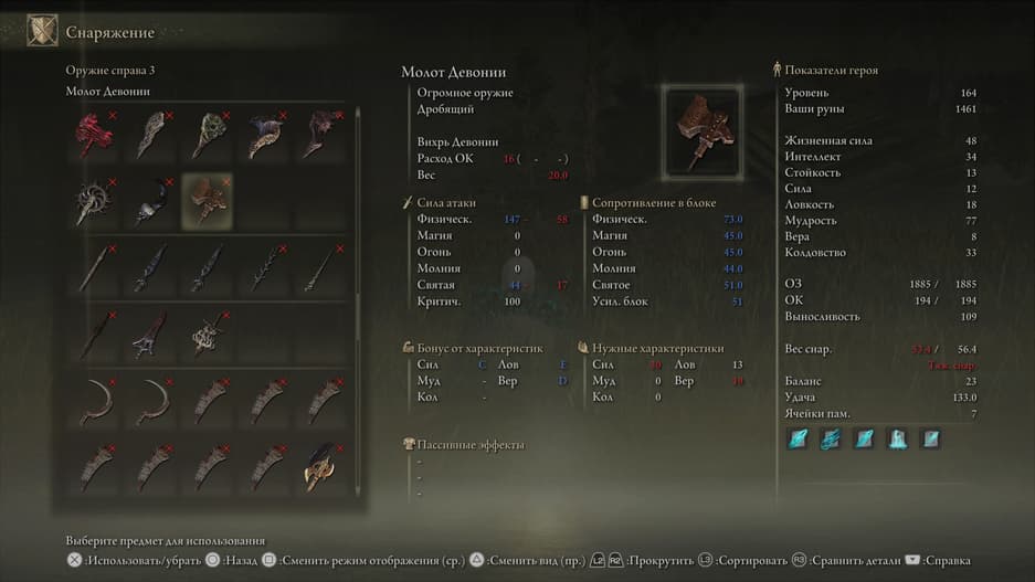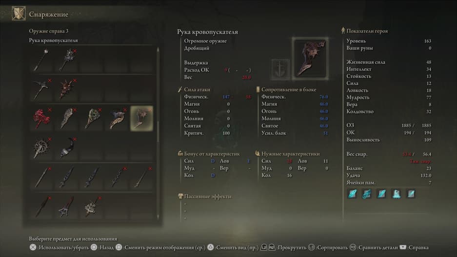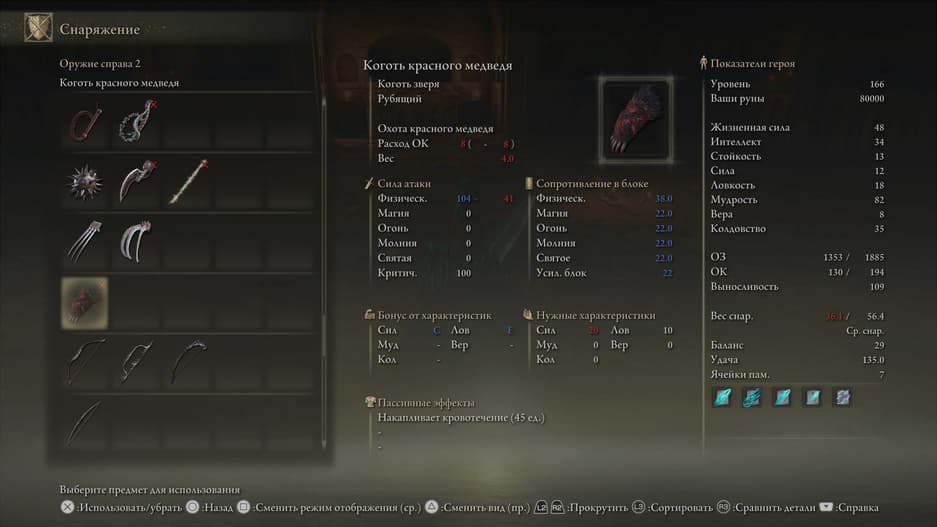Коготь ориентируется на силовой билд и позволяет наносить серию коротких, но быстрых ударов, быстро накапливая кровотечение у врагов. А ещё это одно из уникальных вооружений из дополнения — аналогов ему в оригинальной игре нет.