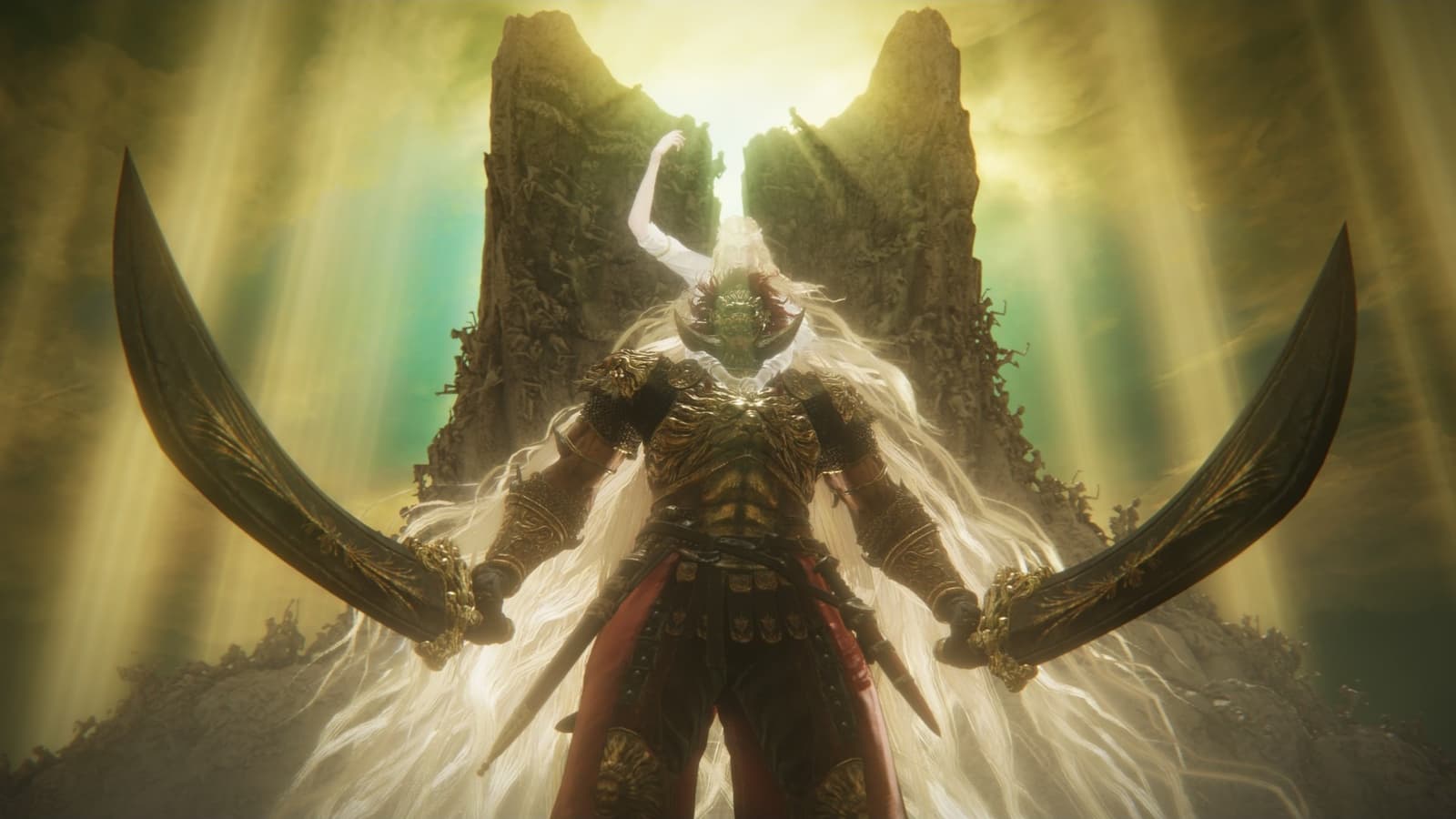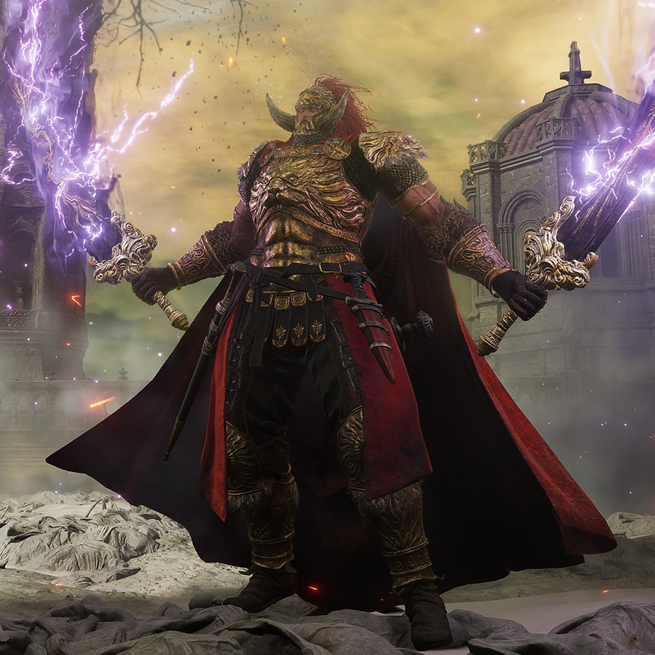 После потери половины здоровья переходит во вторую фазу: правый меч получает дополнительный магический урон, а левый — огненный. Далее может использовать либо огненную, либо магическую стойку — посылая волны магии либо огненный вихрь в игрока.
