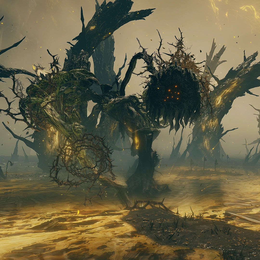 При выходе на арену битвы издали дважды атакует корнями, накладывающими кровотечение — сам босс невосприимчив к этому эффекту, зато уязвим к обморожению, огню и святому урону. Так как сам является антиподом святости Древа Эрд и подсолнухов, которые растут по всему Междуземью в оригинальной игре.