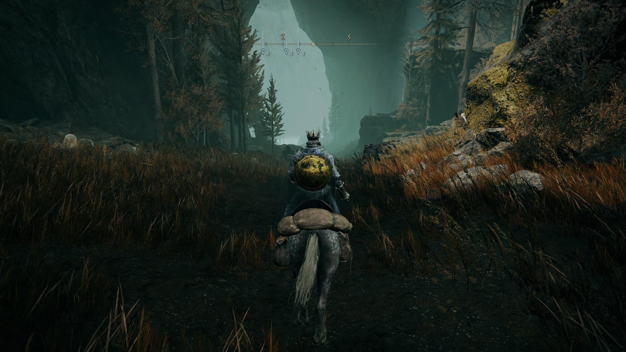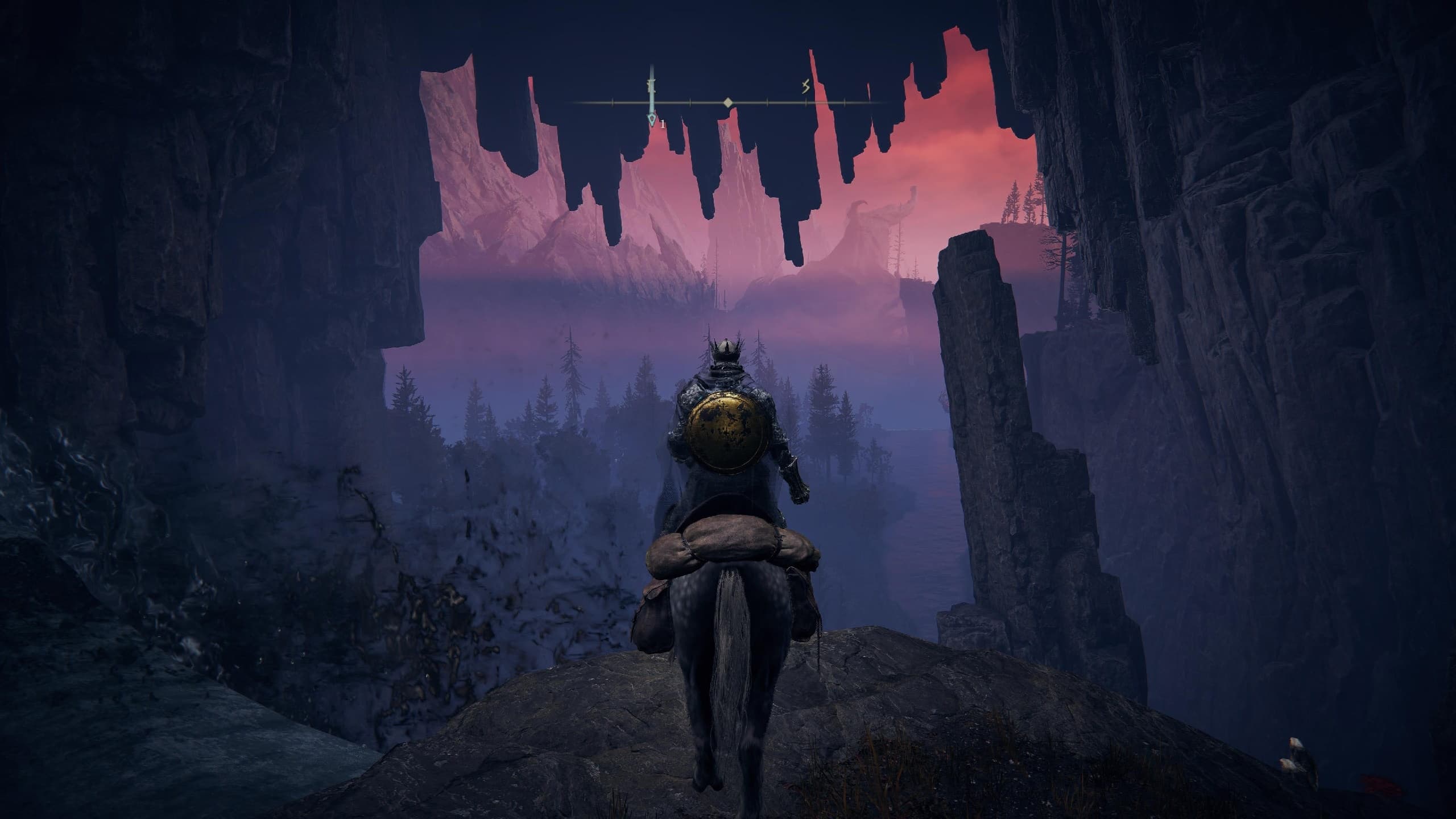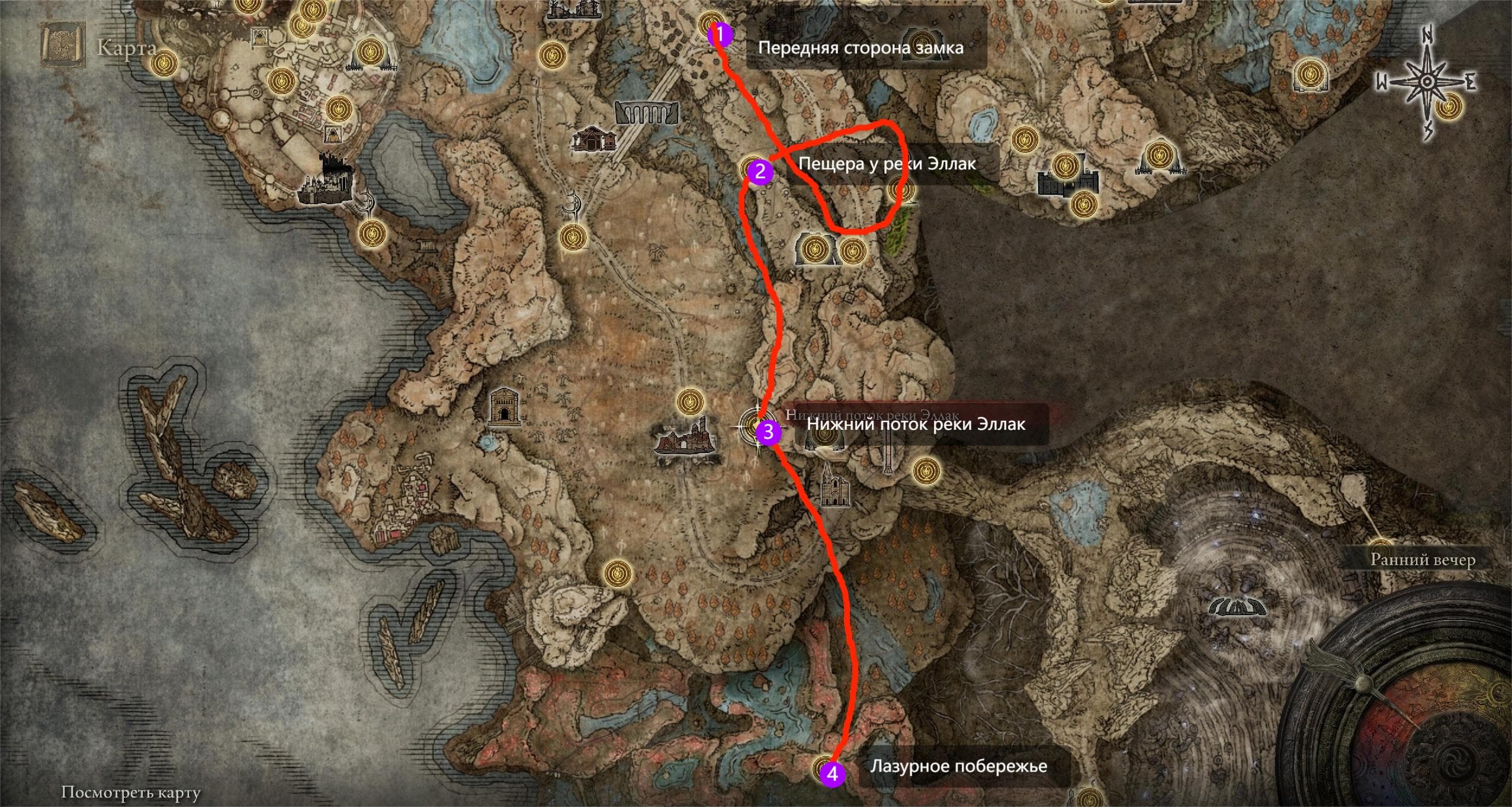 Продолжайте двигаться вдоль левого края, огибая каменный массив по дуге и углубляясь ниже. В итоге вы окажетесь перед пещерой, пройдя по которой, вы найдете место благодати «Пещера у реки Эллак».
