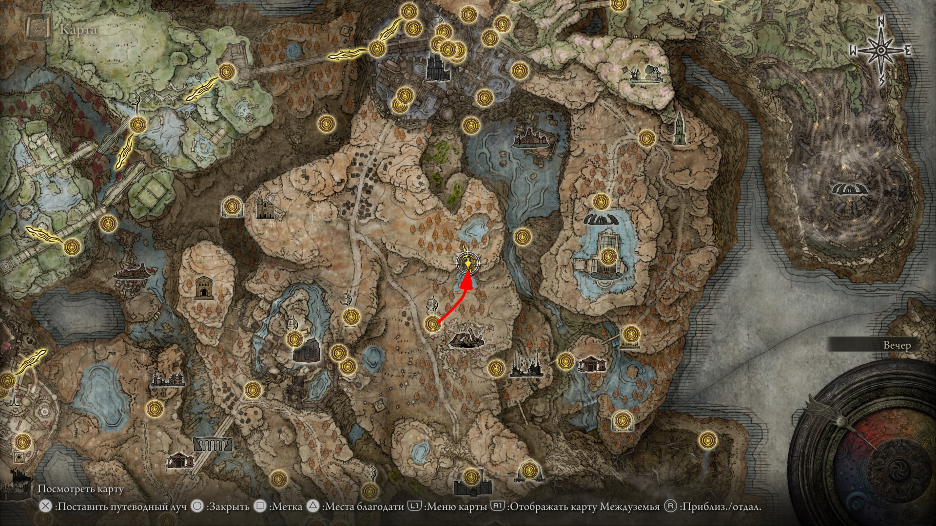 Осколок находится возле статуи Марики, что располагается юго-западнее благодати «Передняя сторона замках».