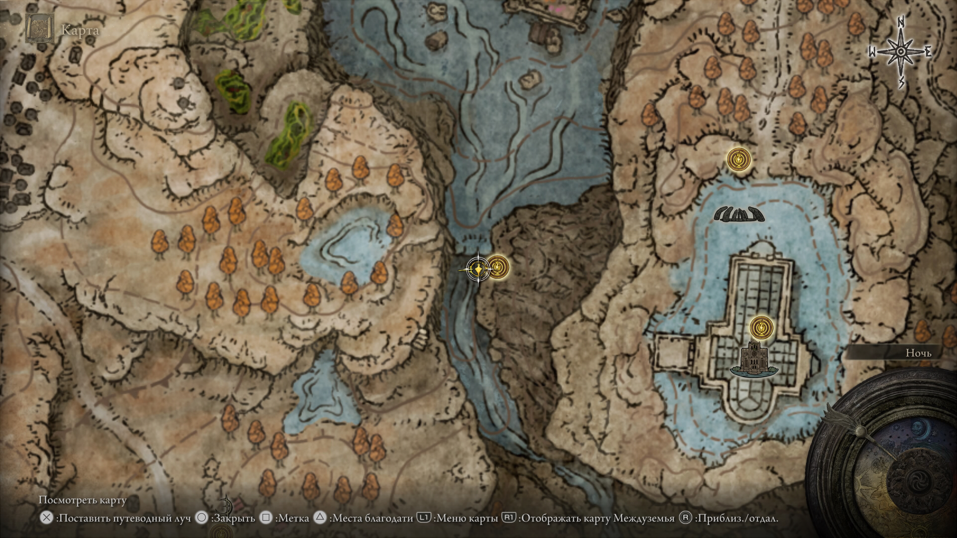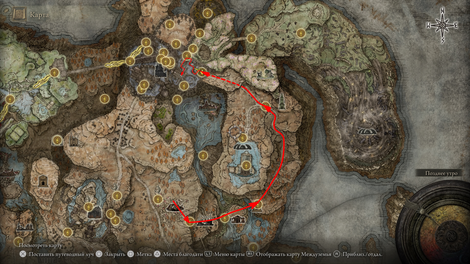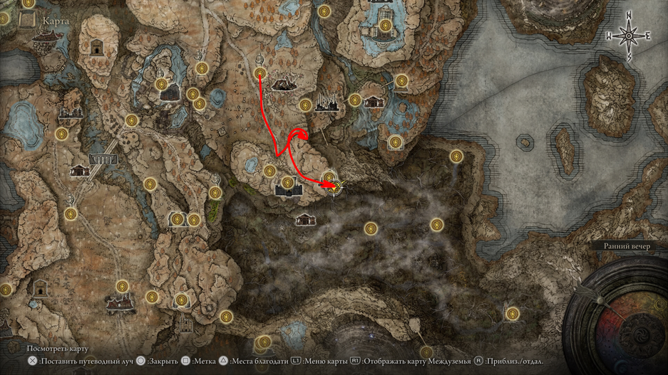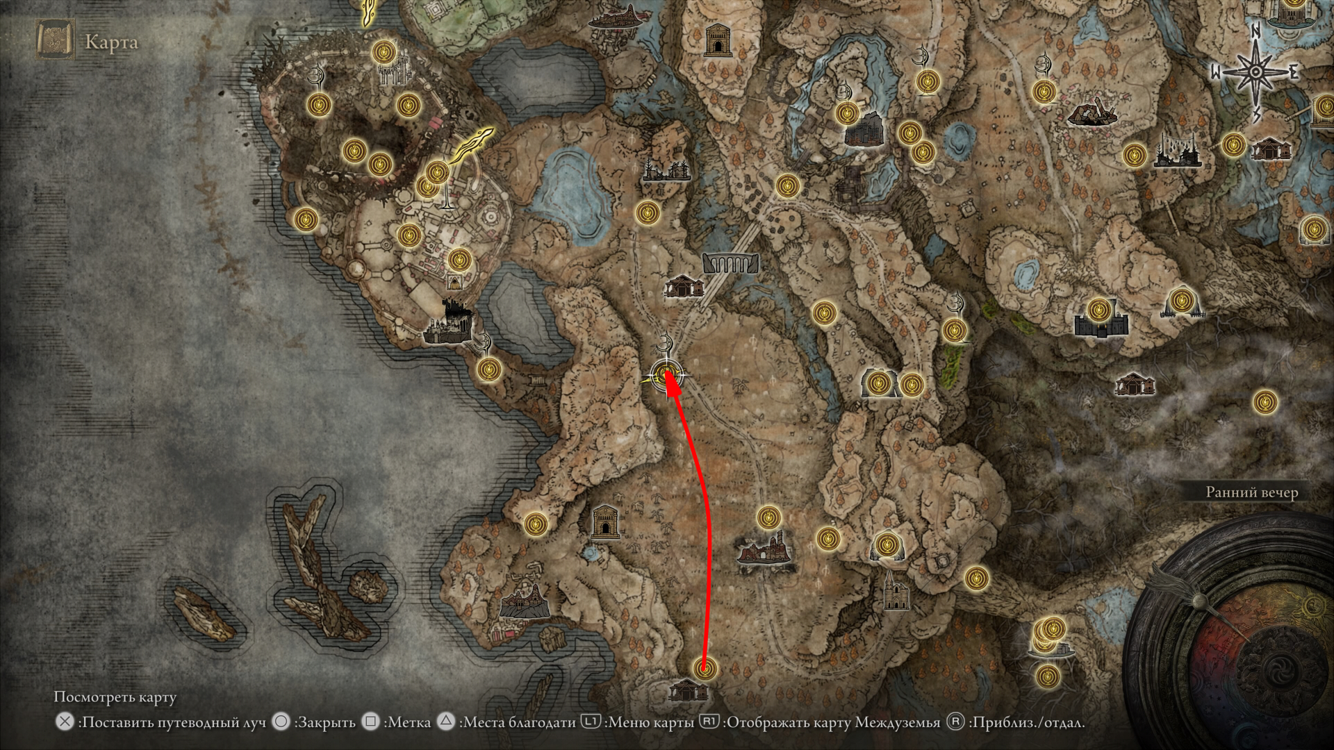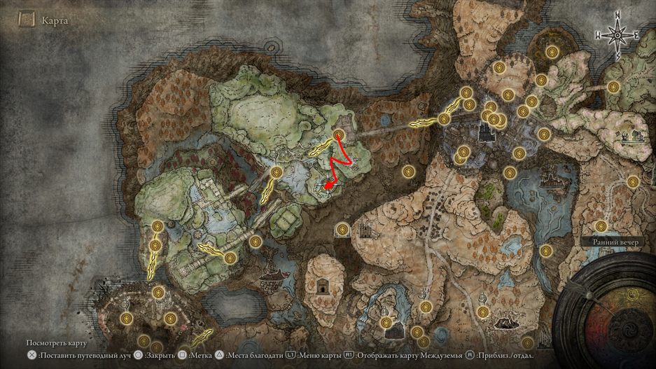 От благодати «Малый частный алтарь» идите вперёд. В месте, где патрулирует Рогатый воин, поверните налево, поднимитесь по лестнице, затем сразу поверните направо, после чего налево до сточного водопада — там ещё один поворот налево. Будьте аккуратны, вас ждёт сразу три засады!