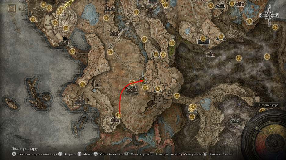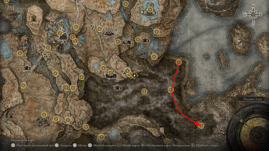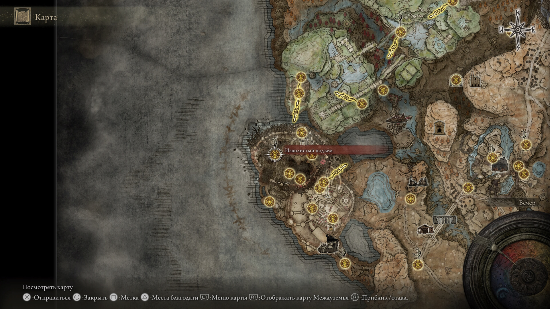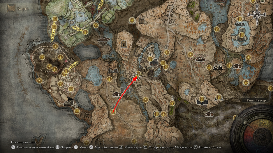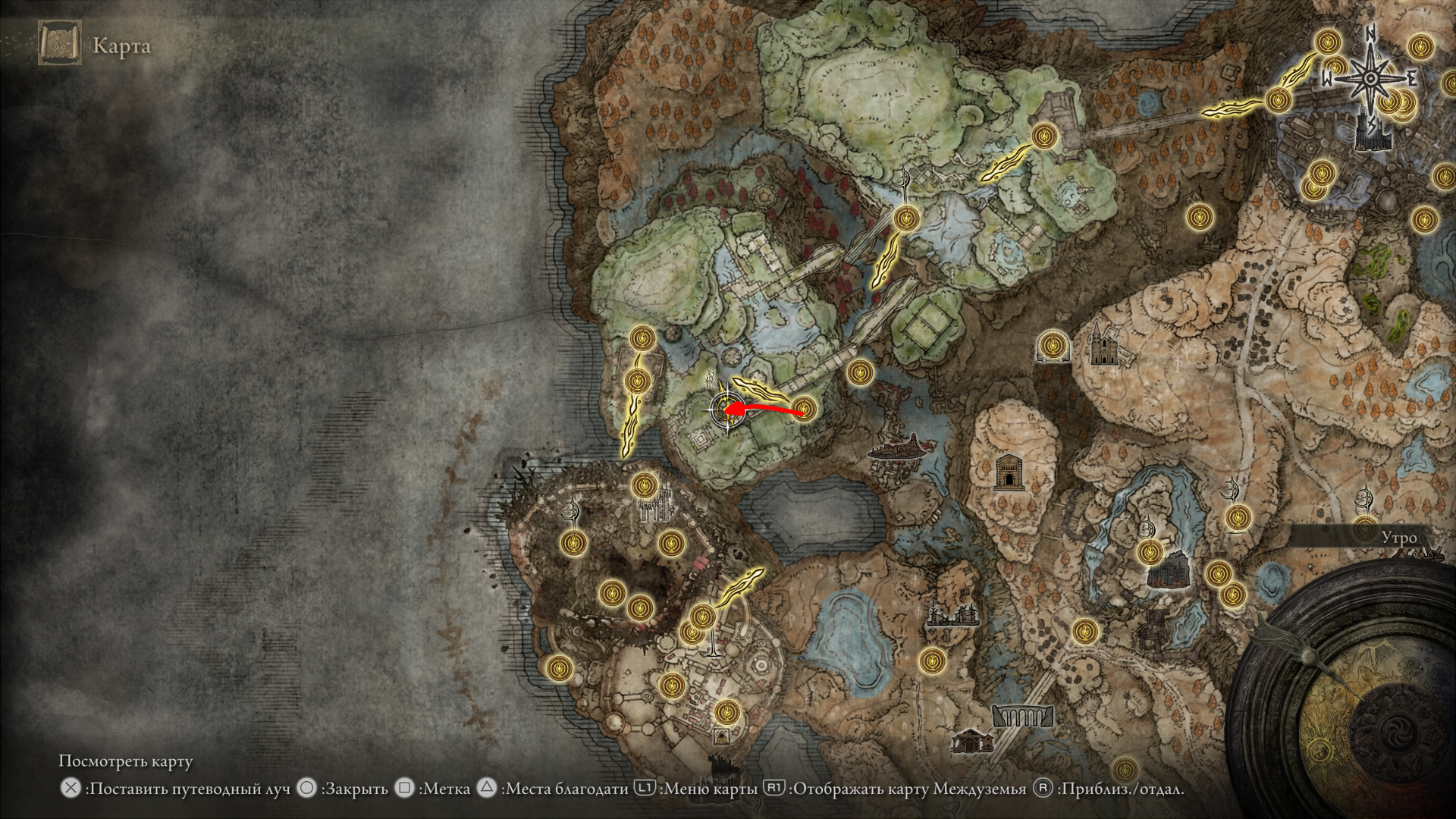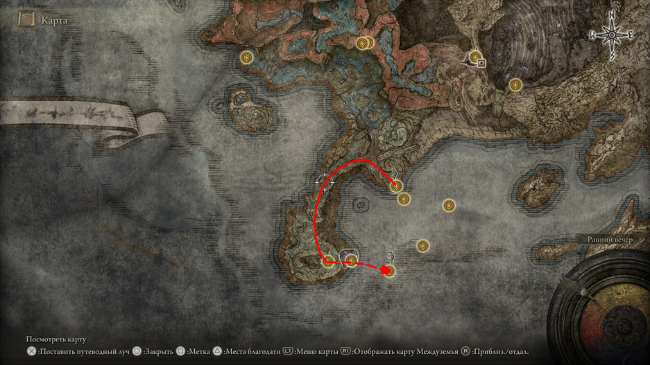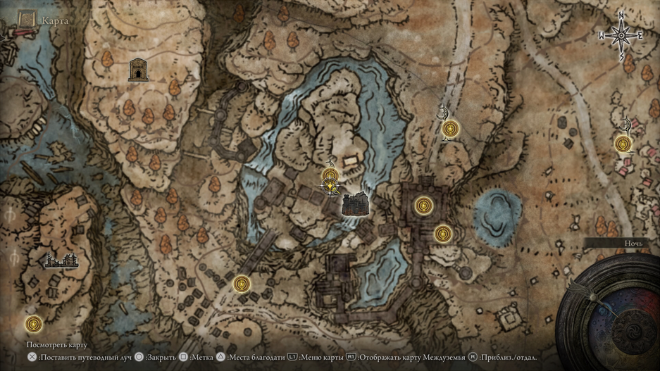 От благодати «Малый частный алтарь» идите вперёд. В месте, где патрулирует Рогатый воин, поверните налево, поднимитесь по лестнице, затем сразу поверните направо, после чего налево до сточного водопада — там ещё один поворот налево. Будьте аккуратны, вас ждёт сразу три засады!