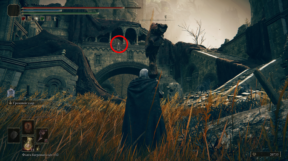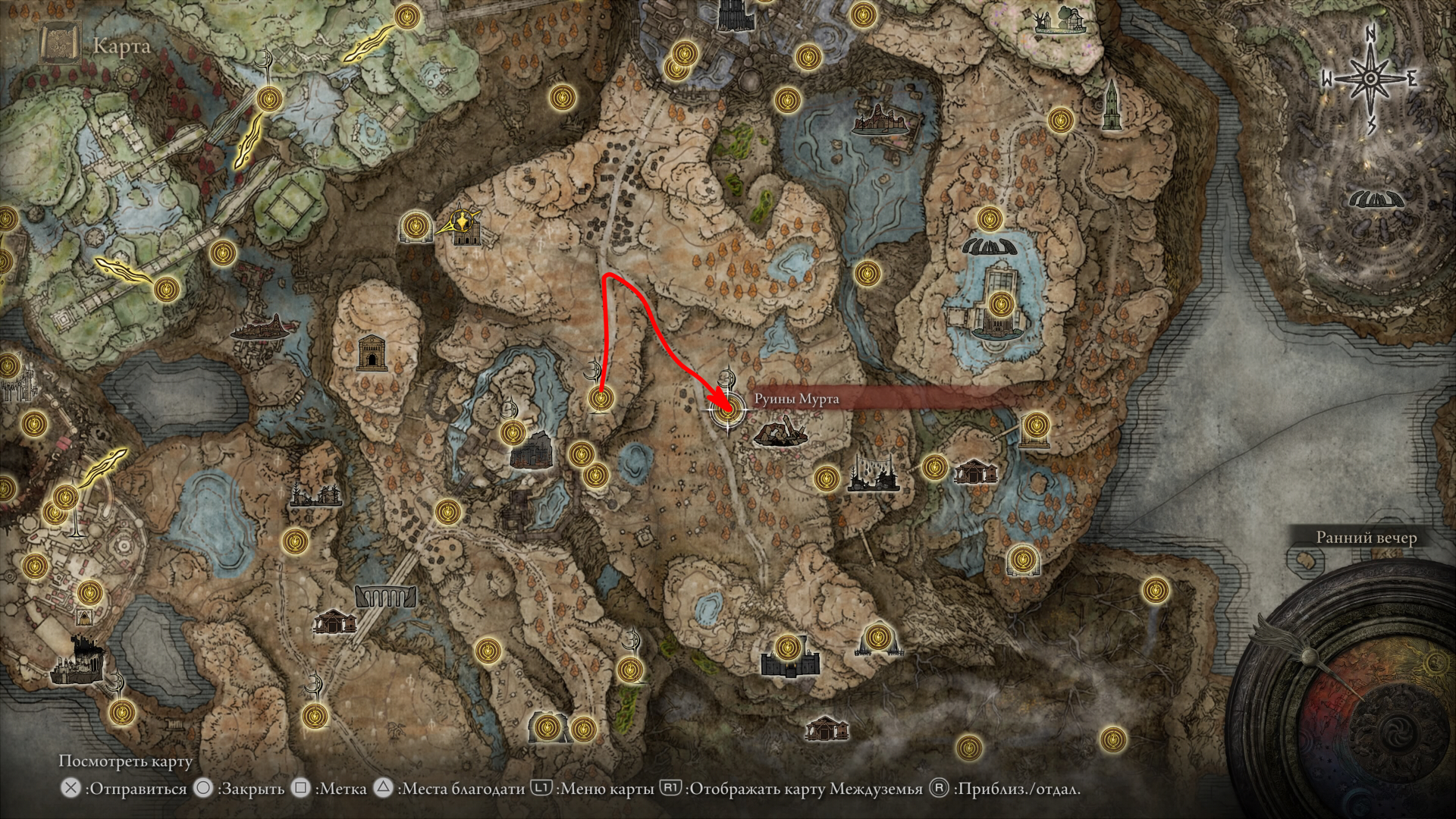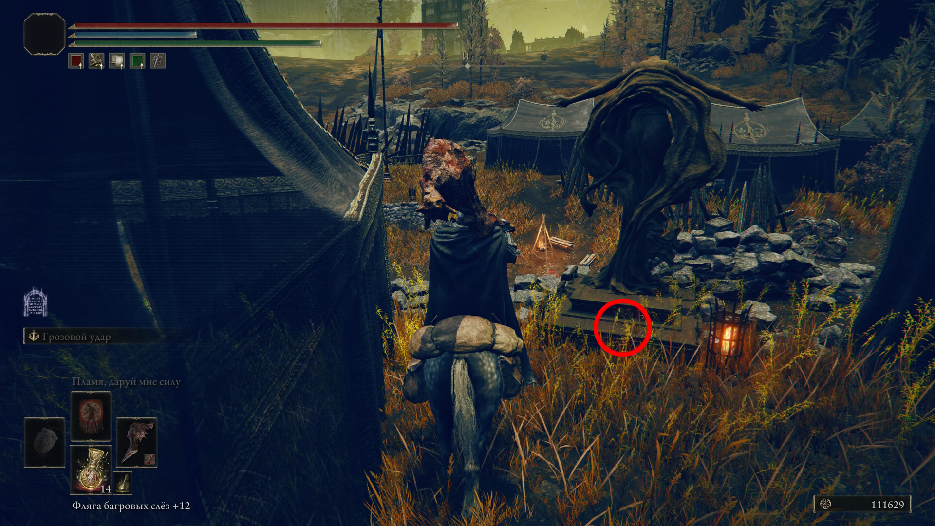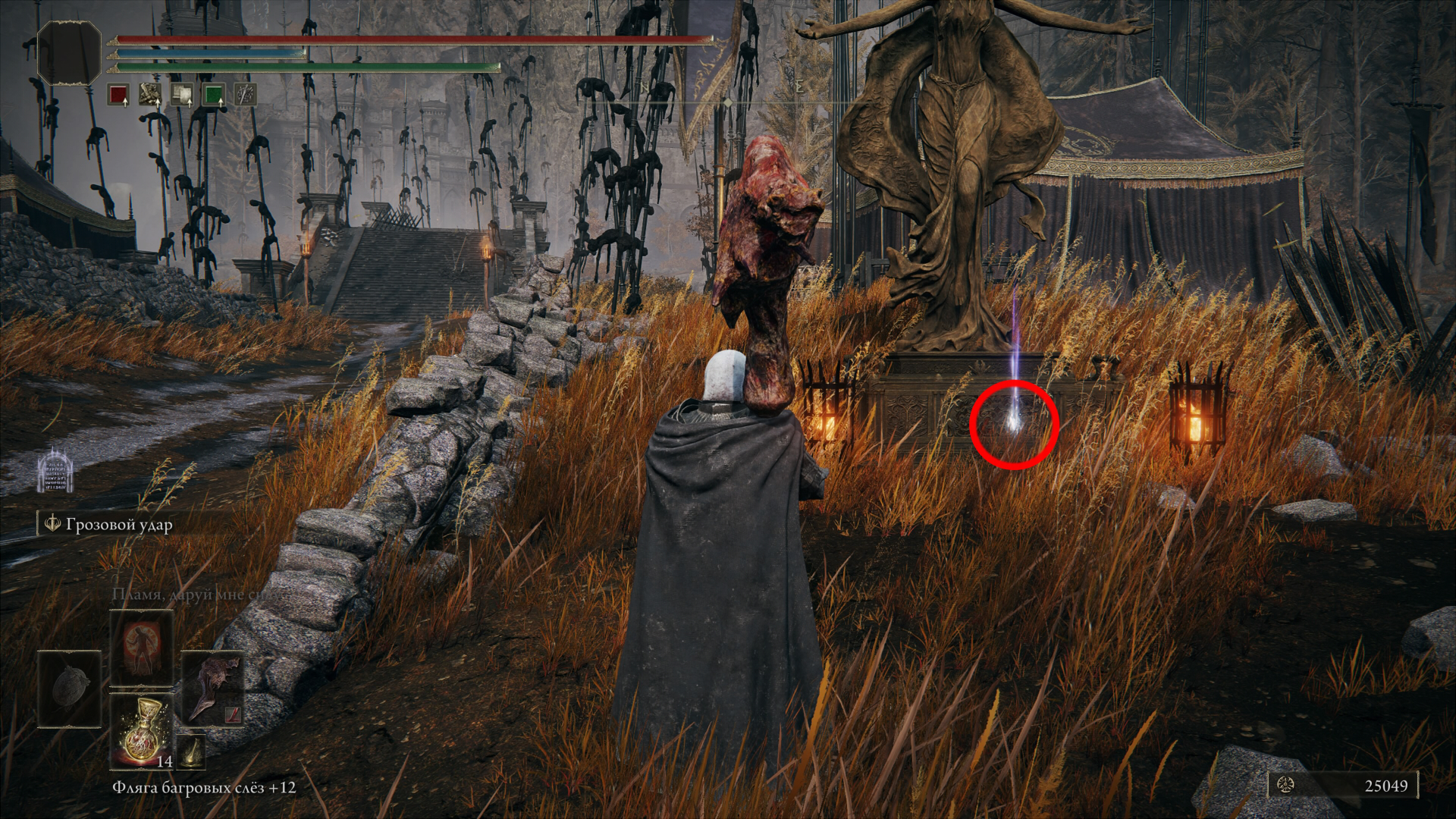 Немного западнее благодати «Руины Мурта» находится небольшой лагерь солдат Мессмера. В нём, возле статуи Марики и находится осколок.