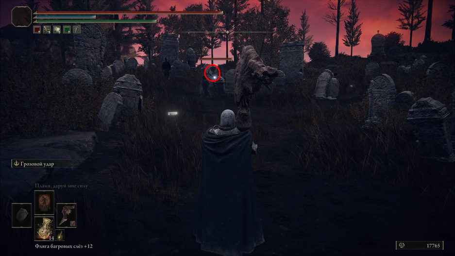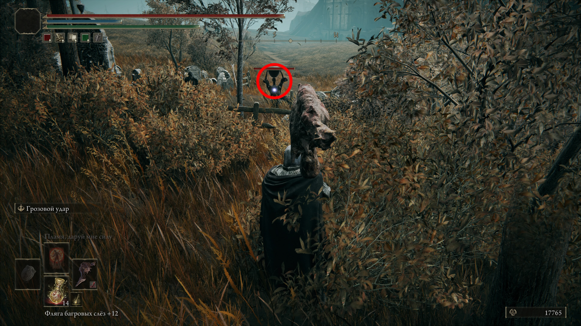 От благодати «Обугленные руины» поверните направо, там будет небольшое кладбище и группа врагов — теней. Вам нужен тот, что с горшком над головой, из него и выпадет осколок.