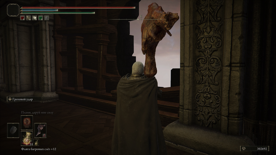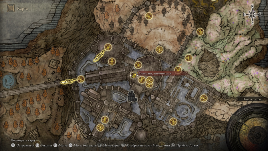 Выйдя из лифта и повернув налево, вы найдете новую благодать — «Хранилище, западная часть». Активировав её, пройдите чуть дальше — там будет деревянная лестница, ведущая вверх.