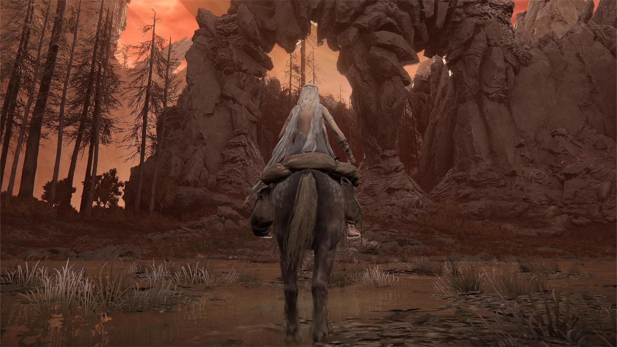 От «Великого алтаря драконьего причастия» следуйте вдоль скелета гигантского дракона и спускайтесь ниже на поляну, усыпанную красными цветами паучьих лилий (ликорисов). Скачите по тропинке между цветами и вскоре выйдете к «Тайной могиле Харо». Двигаясь по воде, вы встретите старого знакомого из оригинальной кампании — лодочника Тибии. За победу над ним можно получить книгу рецептов с призывом нежити.