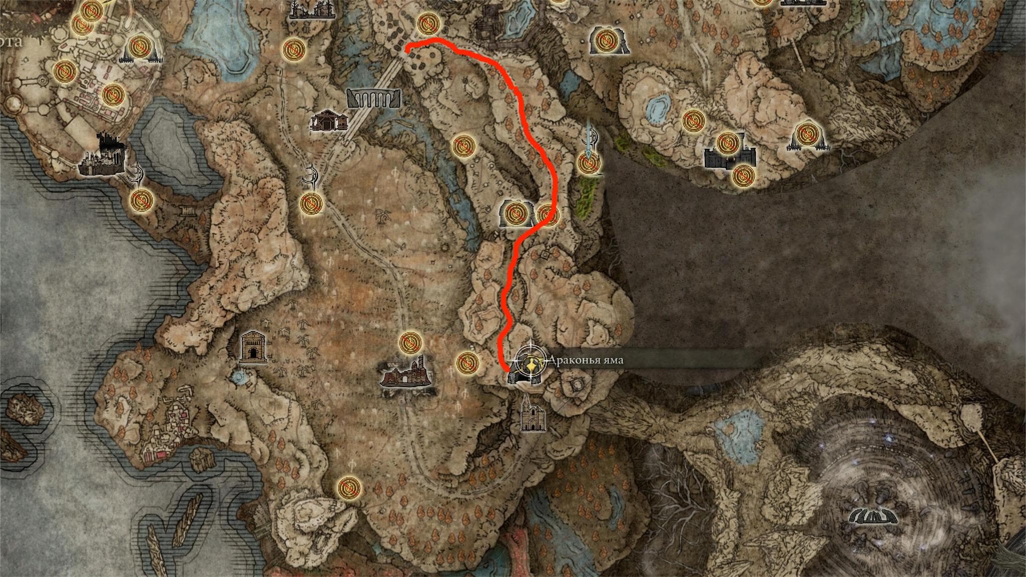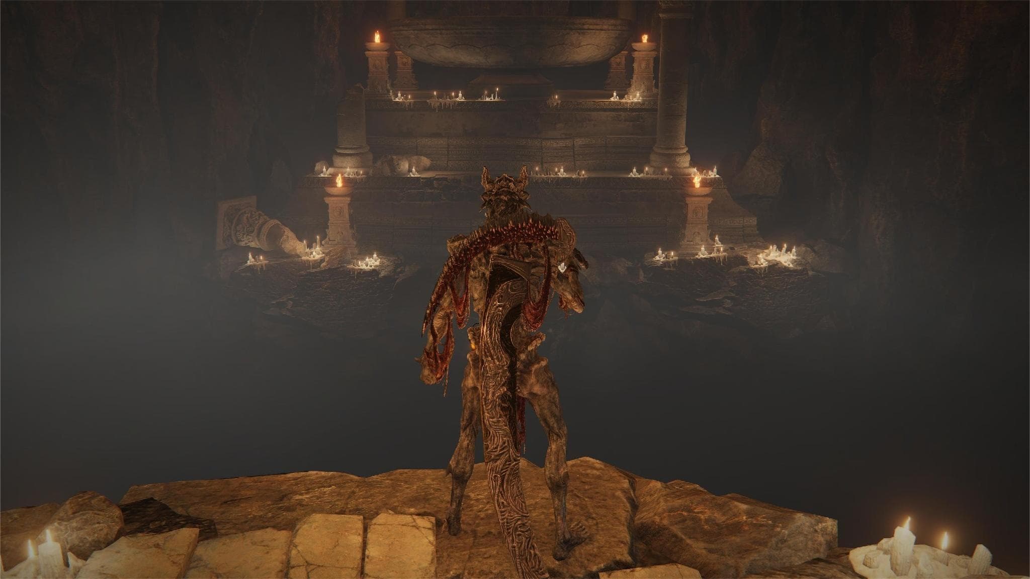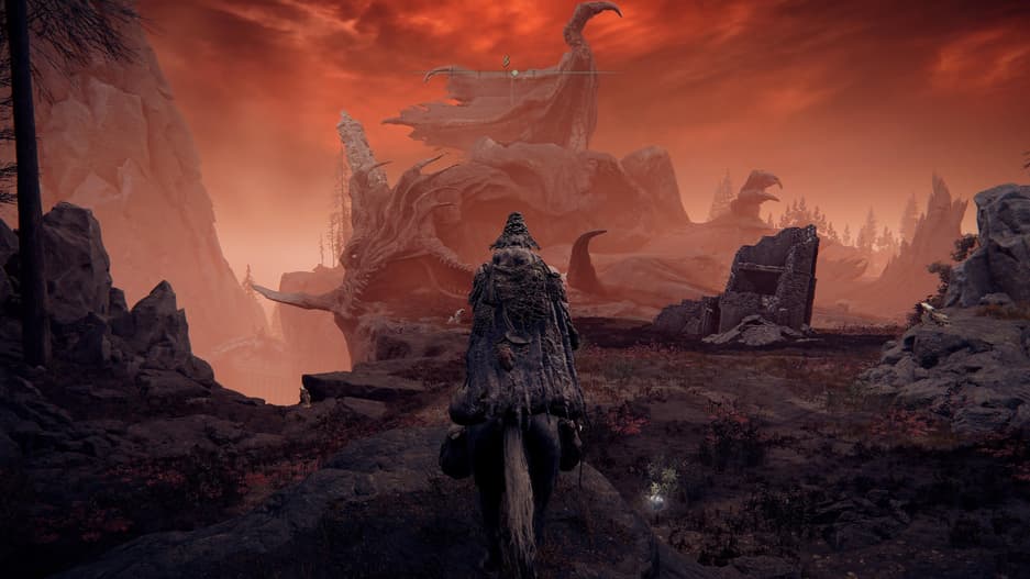 После победы над ним, встаньте в центр арены и повернитесь спиной к «Последнему привалу в Драконьей яме». Справа от вас будет спуск в ущелье — направляйтесь туда. Двигайтесь вперёд и вскоре увидите скелет огромного дракона. Этот путь приведёт вас к «Великому алтарю драконьего причастия».