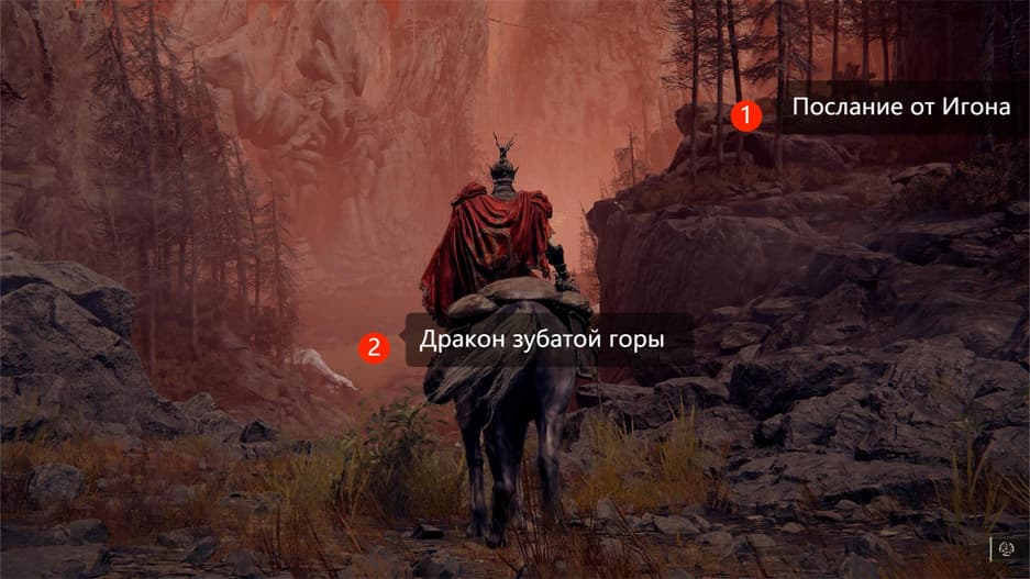 Выйдя из пещеры, придерживайтесь правой стороны каменных массивов. Вскоре вы заметите белое свечение на возвышении. Это сообщение от Игона, наполненное гневом в сторону Бейла Ужасного.
