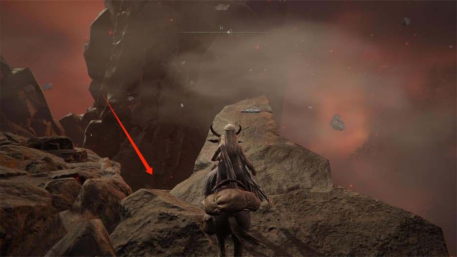 Закончив разговор, двигайтесь вглубь ущелья и поднимайтесь выше, используя два воздушных потока, затем следуйте в узкий проход на юго-востоке. Вскоре на вас покатятся два огромных валуна — ближайшие скалы послужат надежным укрытием.