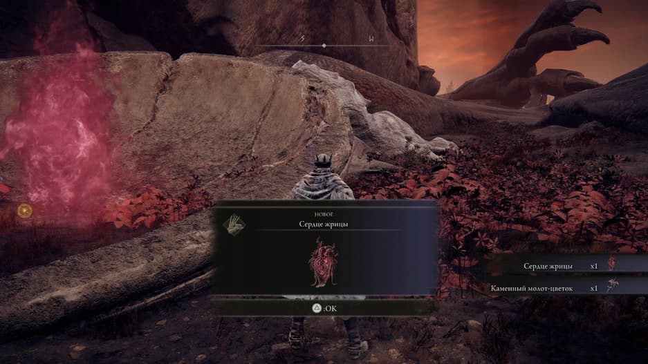 В том месте, где раньше была жрица, вы обнаружите «Сердце жрицы» и оружие «Каменный молот-цветок» — молот обладает повышенным уроном по драконам, а него навык способен как наносить урон, так и снизить сопротивление к молнии у противников.