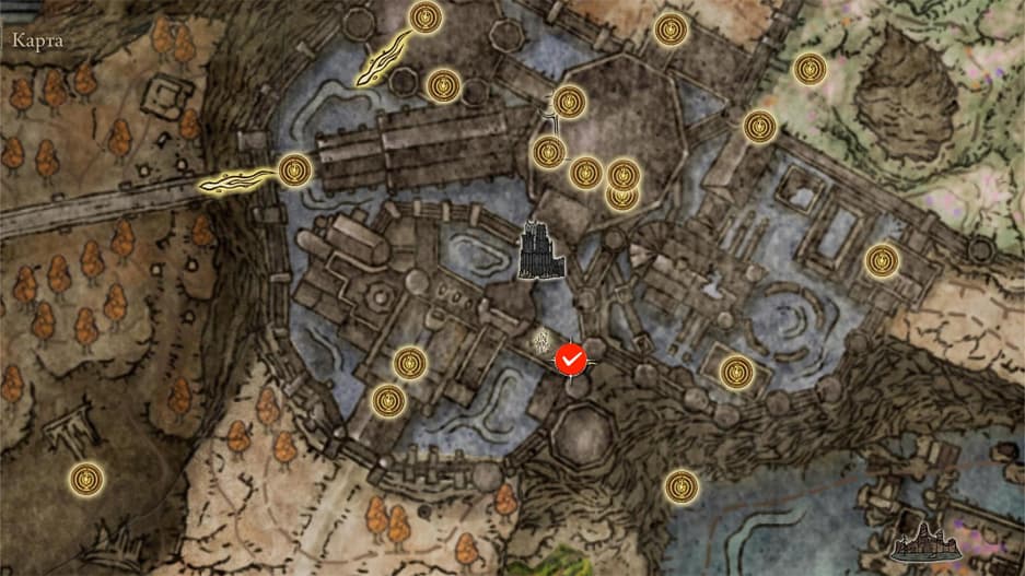 Первым делом отправляйтесь на место благодати «Хранилище, первый этаж» в Пристанище теней и спускайтесь на подъёмнике, который привёл вас в хранилище. Вы окажетесь перед лестницей, которую охраняет солдат Мессмера. Пройдя немного вперёд, вы окажетесь на перекрёстке — поверните налево и пройдите ещё немного вперёд. Вы увидите деревянную лестницу, расположенную слева. Спускайтесь по ней и идите в правую сторону, аккуратно ступая вдоль стены, чтобы случайно не упасть в воду.