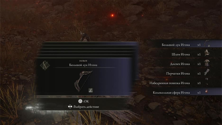 Теперь возвращайтесь на благодать «Подножье зубатой горы» на место последней встречи с Игоном. Незадачливый рыцарь-дракон испустил дух, оставив после себя комплект брони и «Большой лук Игона», который позволит почувствовать себя драконорожденным из The Elder Scrolls V: Skyrim. Также на месте гибели будет лежать «Сфера Игона» — её следует отдать старухам в Крепости Круглого стола. Так вы сможете приобретать стрелы для этого лука.